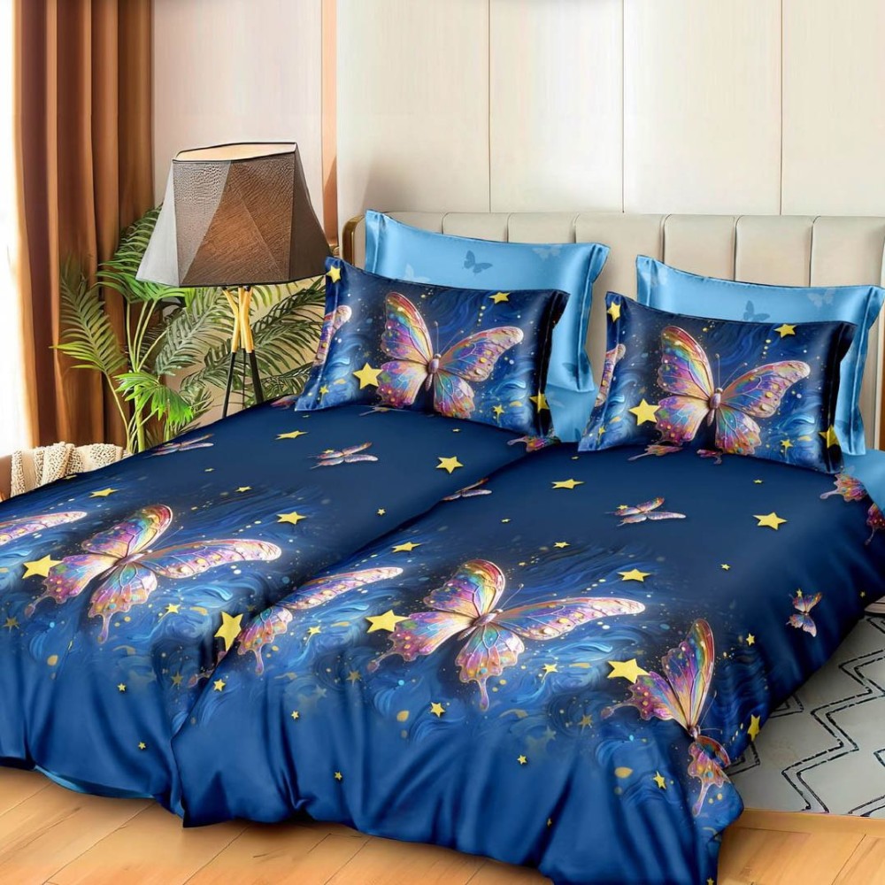 Lenjerie de pat cu 2 cearsafuri pt. pilota, 7 piese, Bumbac Satinat Superior, Albastru, fluturi, Johny Home Pucioasa, cod produs: SPR-K-70