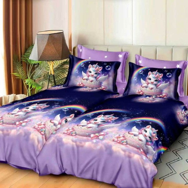 Lenjerie de pat cu 2 cearsafuri pt. pilota, 7 piese, Bumbac Satinat Superior, Albastru, unicorni, Johny Home Pucioasa, cod produs: SPR-K-66