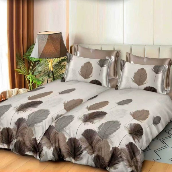 Lenjerie de pat cu 2 cearsafuri pt. pilota, 7 piese, Bumbac Satinat Superior, Bej, pene, Johny Home Pucioasa, cod produs: SPR-K-57