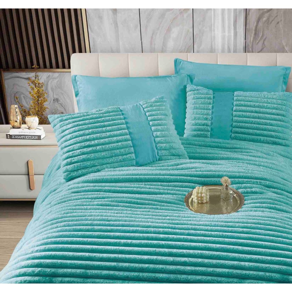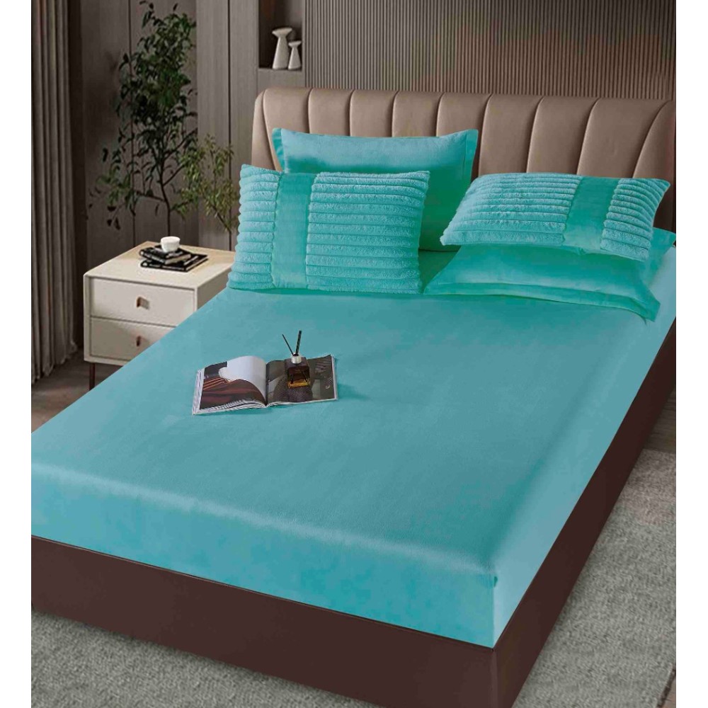 Lenjerie de pat cu Pilota Inclusa, Jojo Home, Cearceaf cu Elastic, 6 Piese, Blană de Iepure Artificială, Bleu, cod produs: JOJ-CTM-6