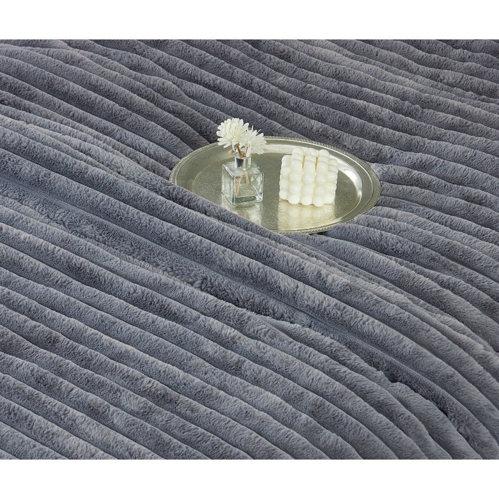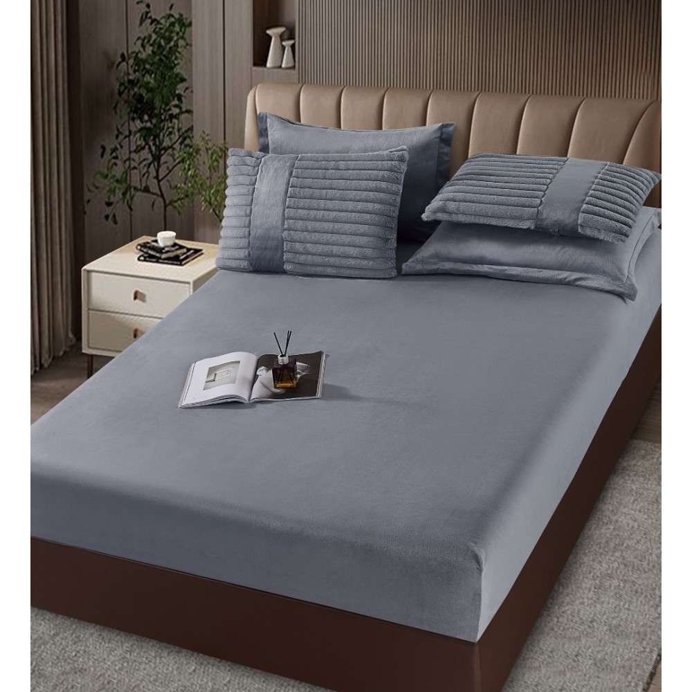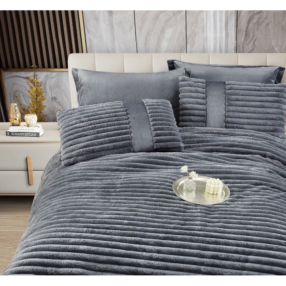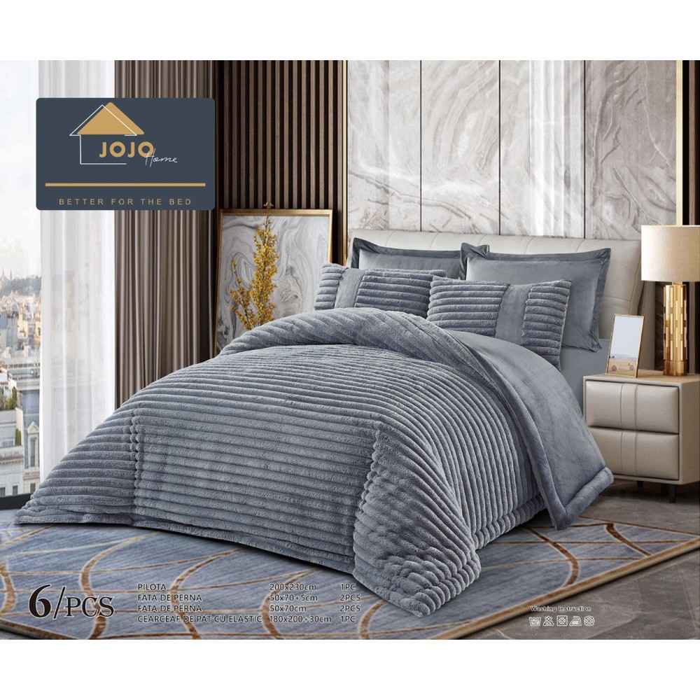 Lenjerie de pat cu Pilota Inclusa, Jojo Home, Cearceaf cu Elastic, 6 Piese, Blană de Iepure Artificială, Gri, cod produs: JOJ-CTM-5