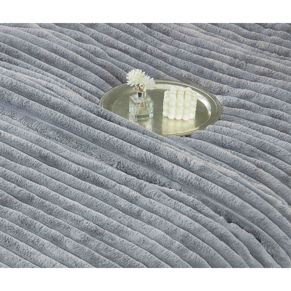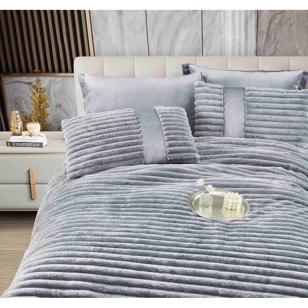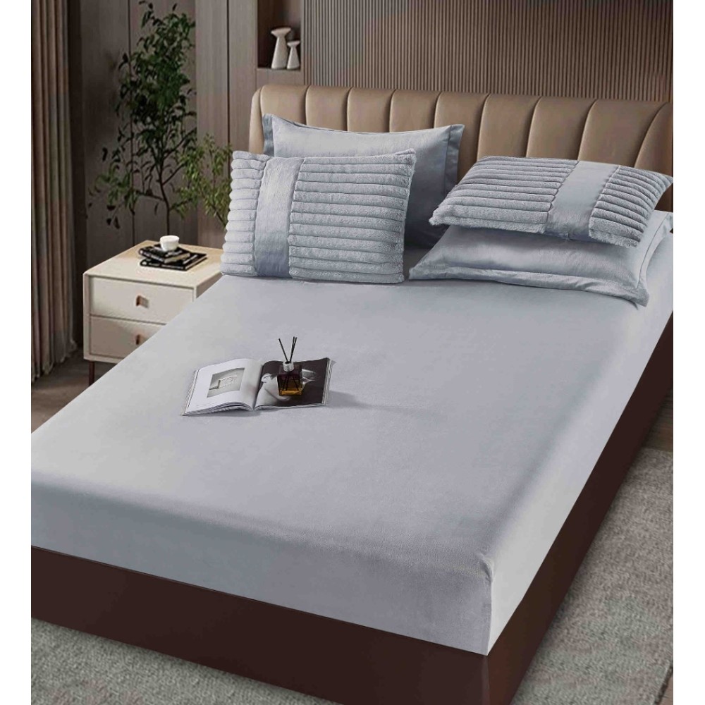 Lenjerie de pat cu Pilota Inclusa, Jojo Home, Cearceaf cu Elastic, 6 Piese, Blană de Iepure Artificială, Gri deschis, cod produs: JOJ-CTM-10