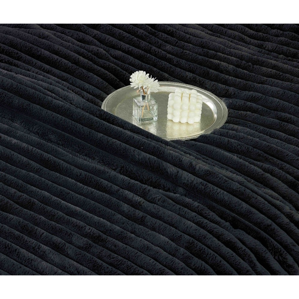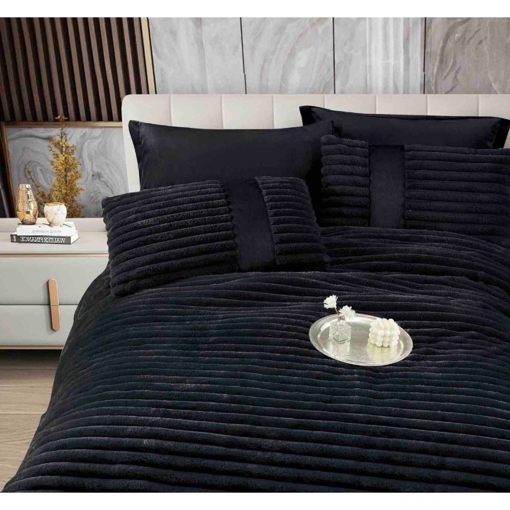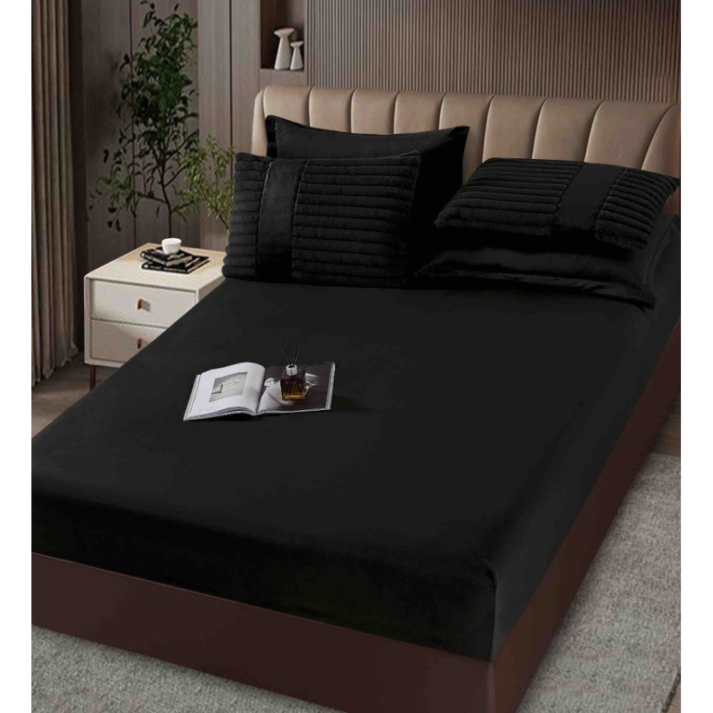 Lenjerie de pat cu Pilota Inclusa, Jojo Home, Cearceaf cu Elastic, 6 Piese, Blană de Iepure Artificială, Negru, cod produs: JOJ-CTM-1