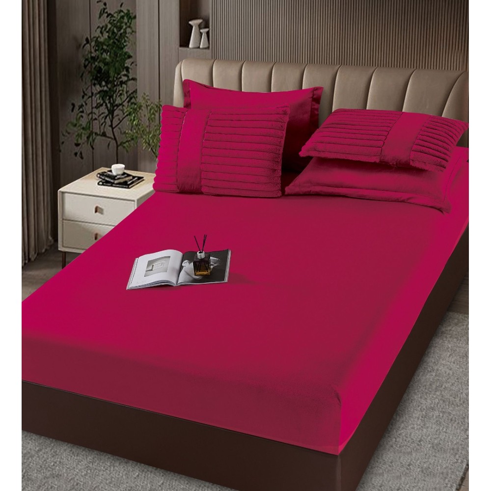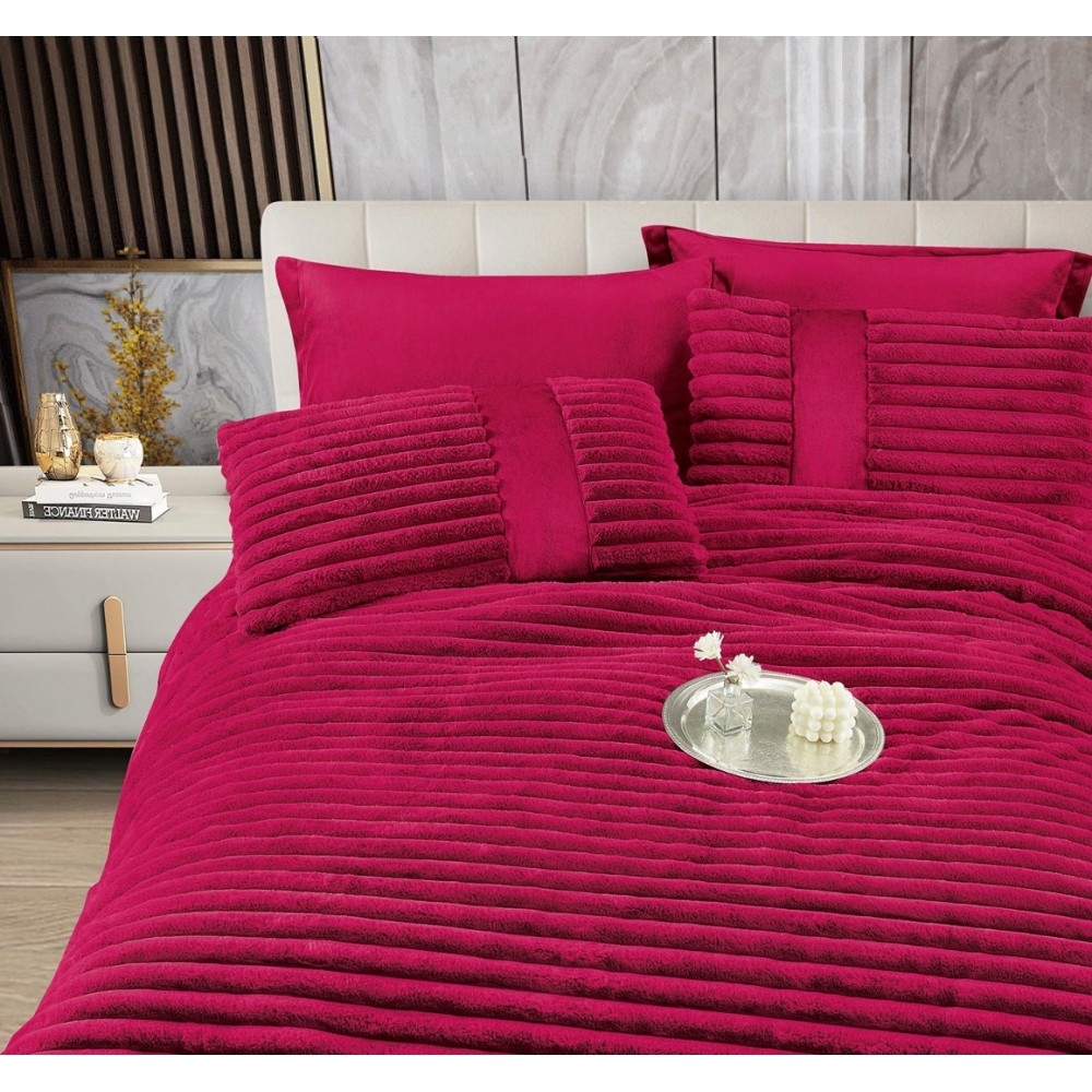 Lenjerie de pat cu Pilota Inclusa, Jojo Home, Cearceaf cu Elastic, 6 Piese, Blană de Iepure Artificială, Rosu, cod produs: JOJ-CTM-3