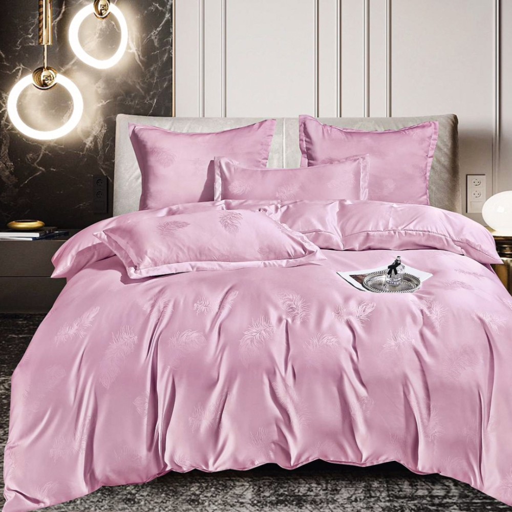 Lenjerie de Pat Dublu (140x200cm, 160x200cm, 180x200cm), Jacquard Finetat, 6 Piese, Luciu Satinat Rafinat și Confort Premium, Roz, Pene, Casa Minunata, cod produs: YN-JQD-09
