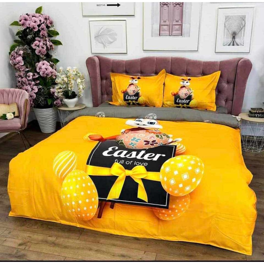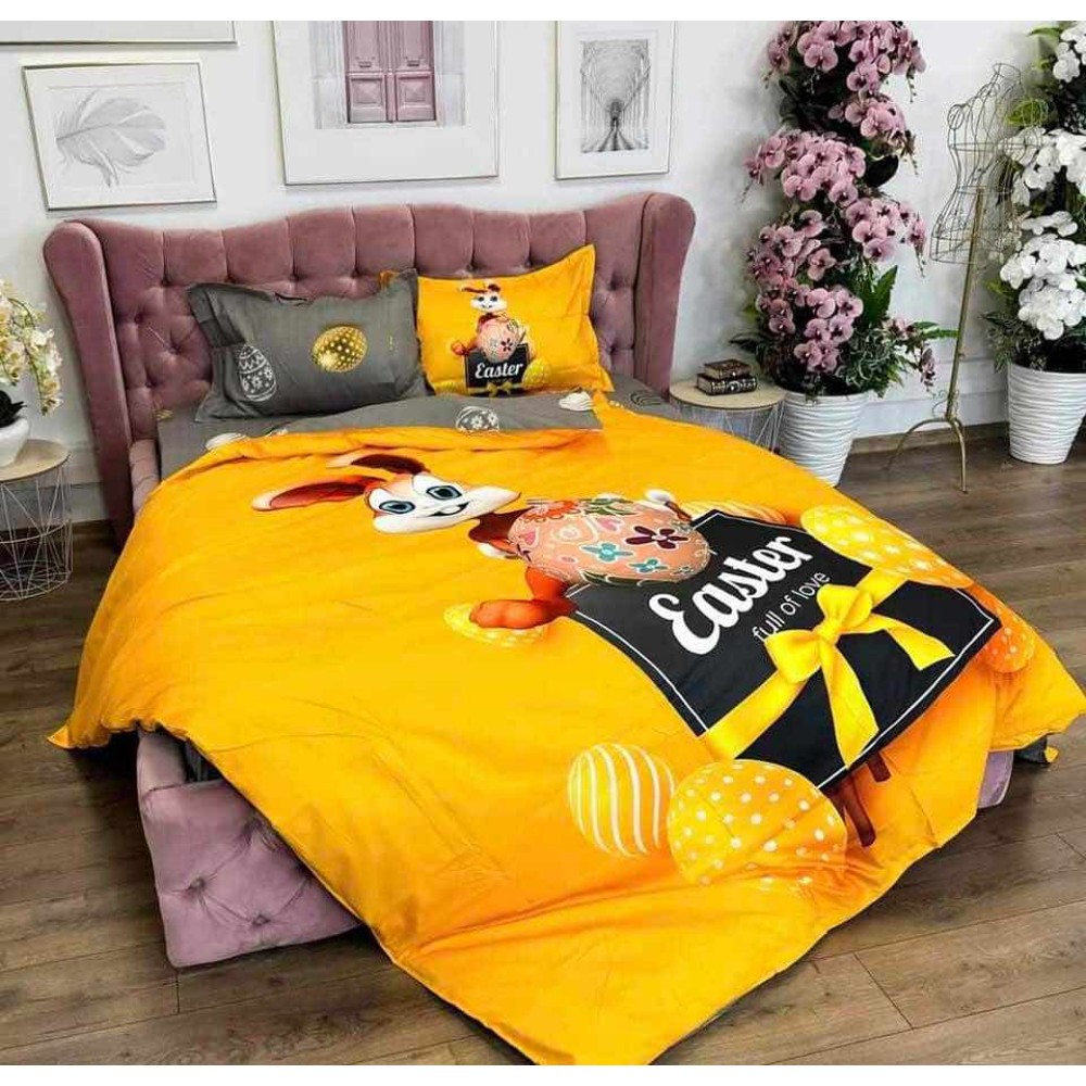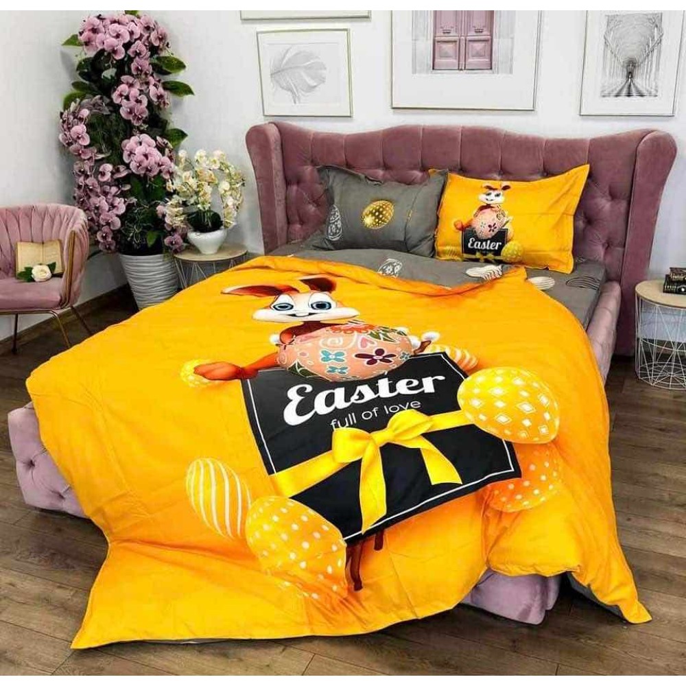 Lenjerie de Pat Dublu, Finet, Imprimeu Digital, 4 Piese, Galben, Iepuraș, Happy Easter, Super Design Pucioasa, cod produs: SDP-PF-4