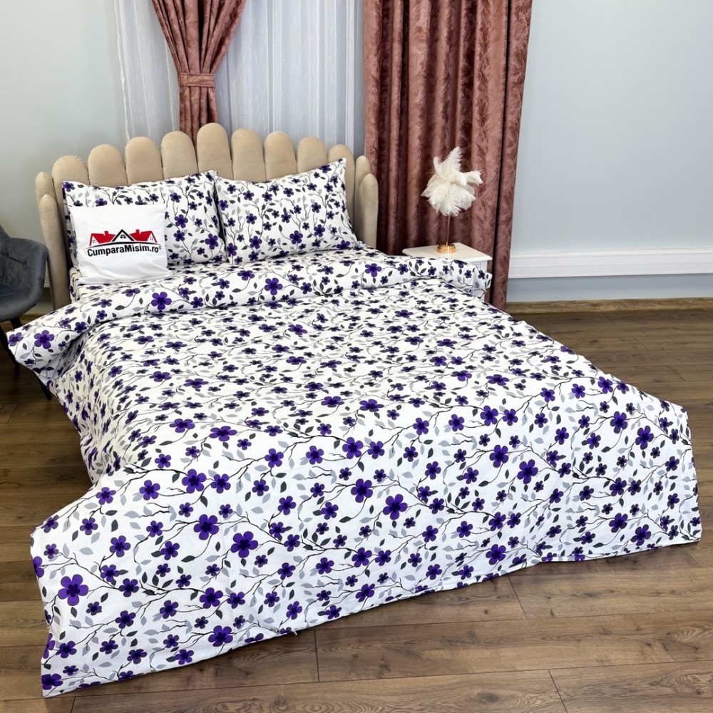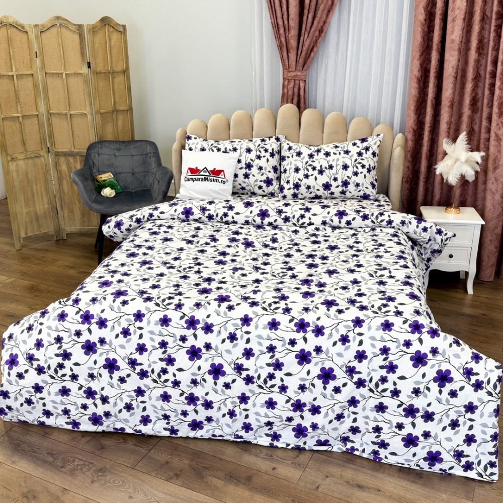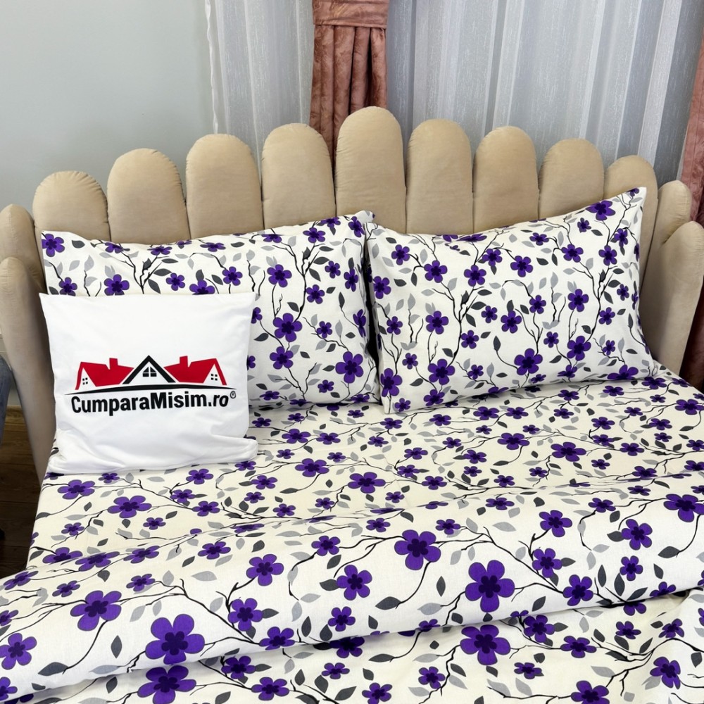Lenjerie de pat dublu din policoton – 4 piese, realizată manual în atelierul Cumparamisim