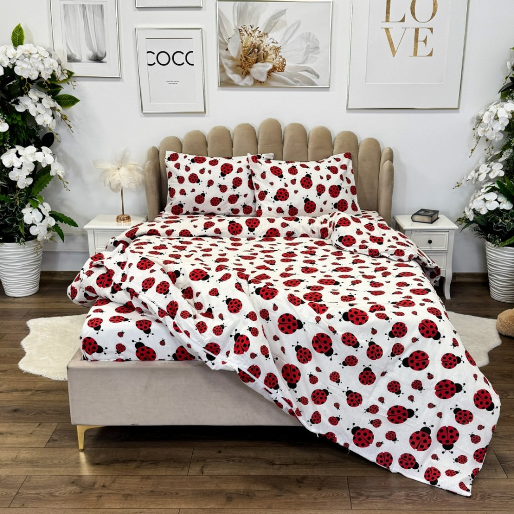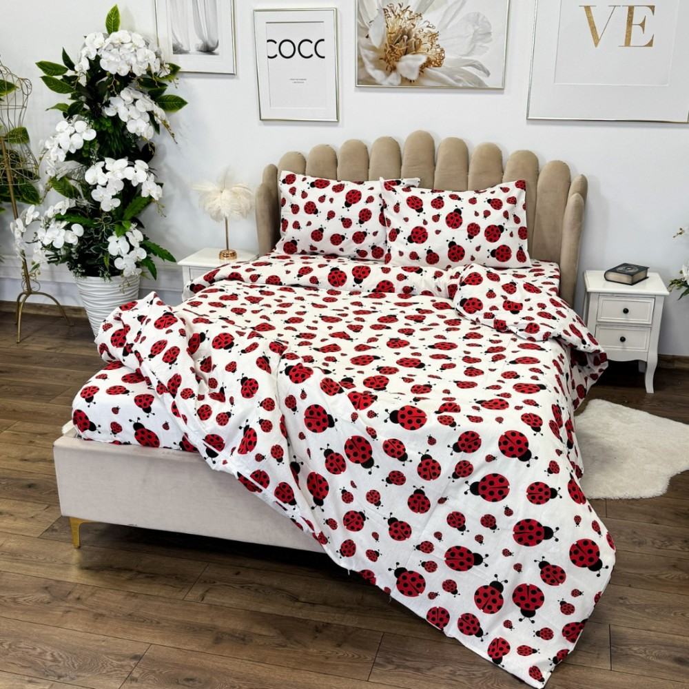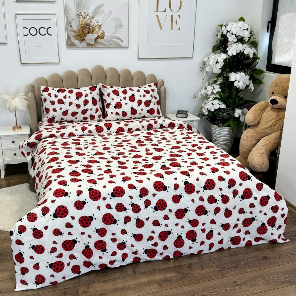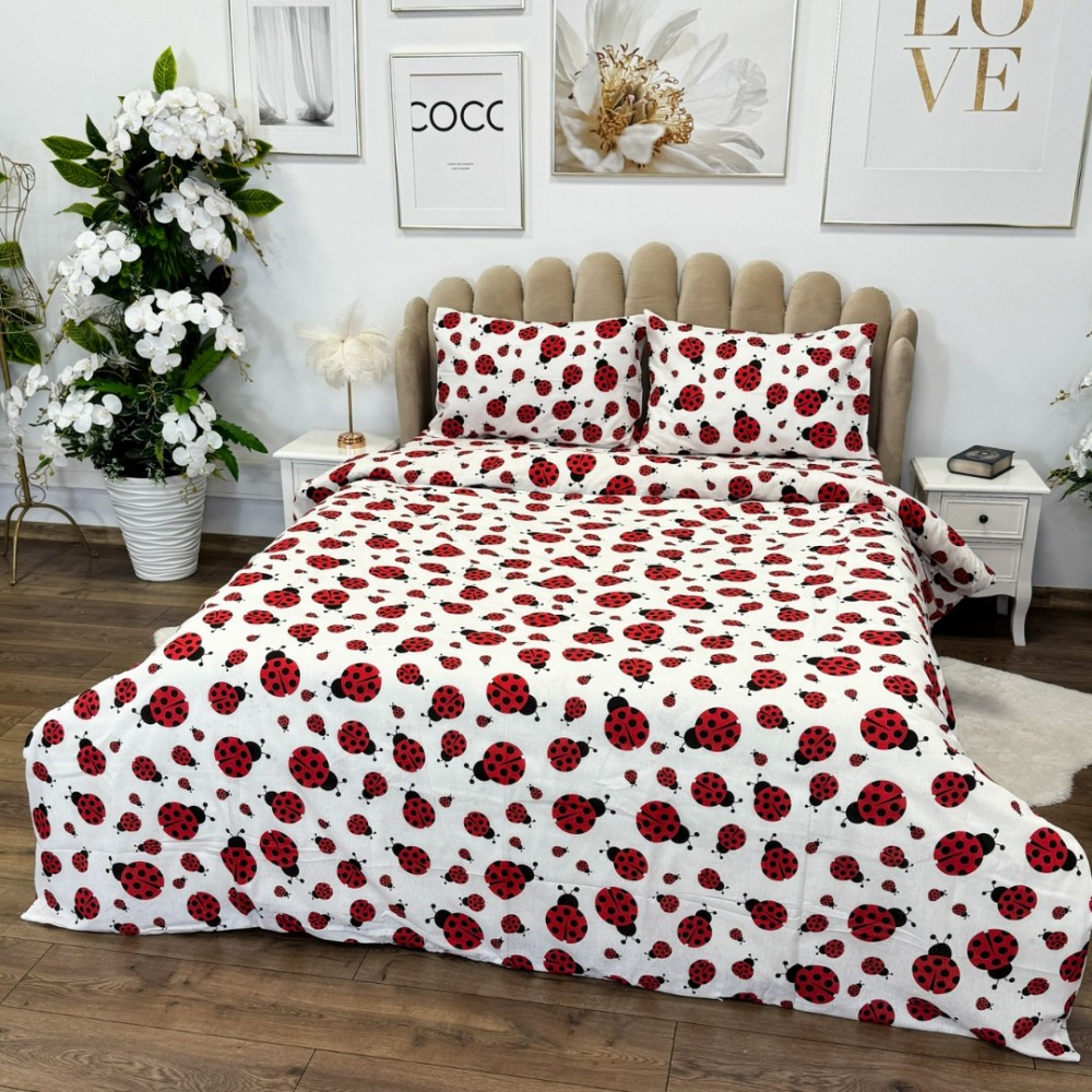 Lenjerie de pat dublu din policoton – 4 piese, realizată manual în atelierul Cumparamisim