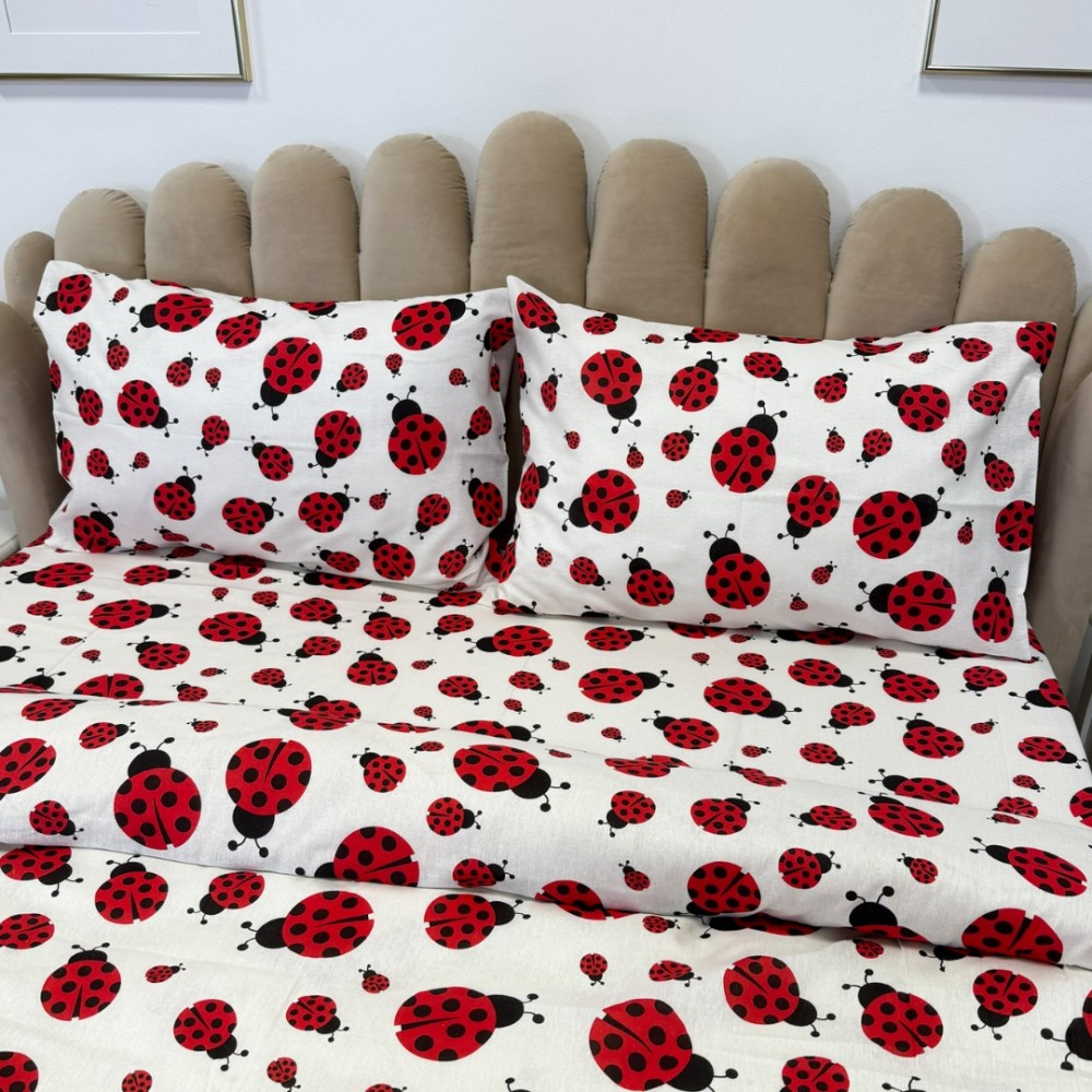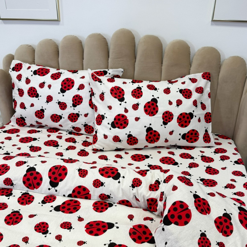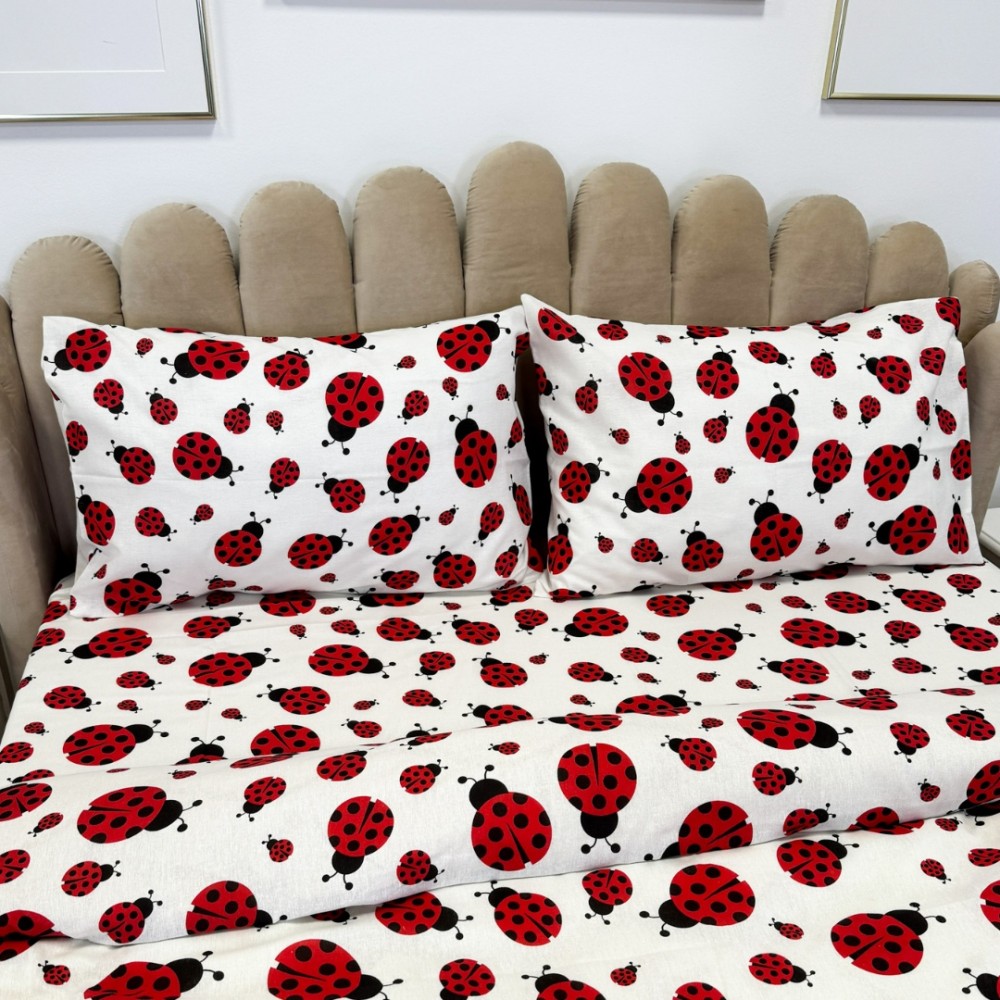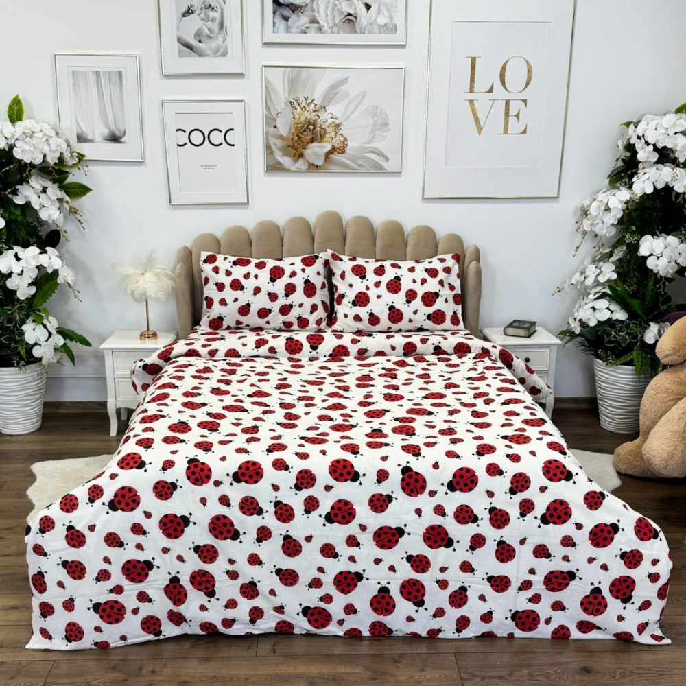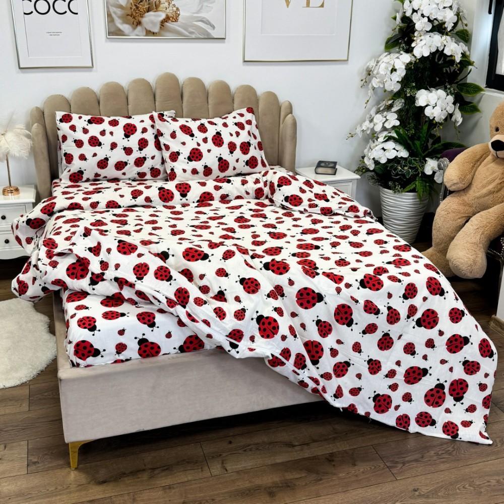 Lenjerie de pat dublu din policoton – 4 piese, realizată manual în atelierul Cumparamisim