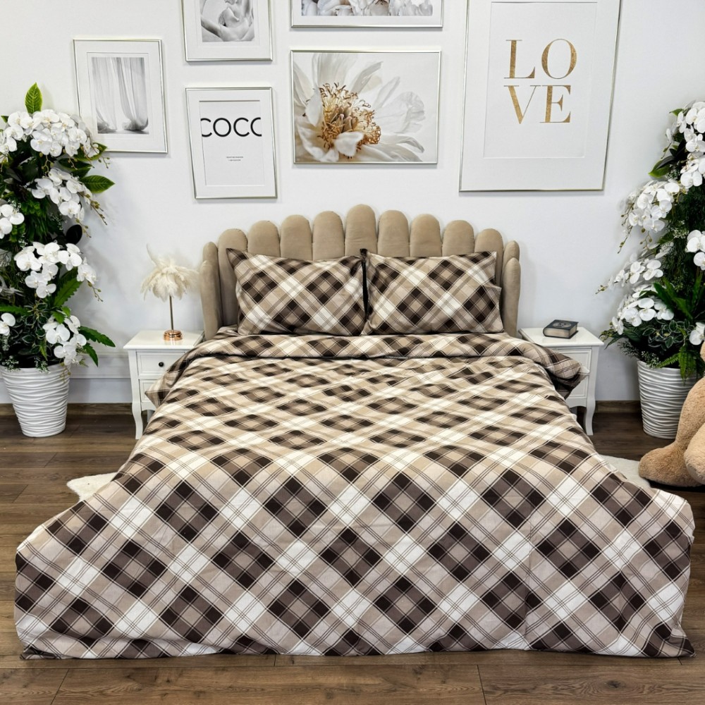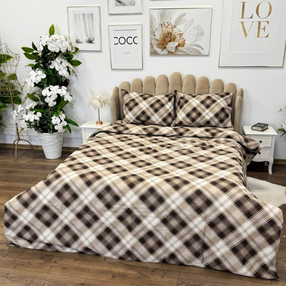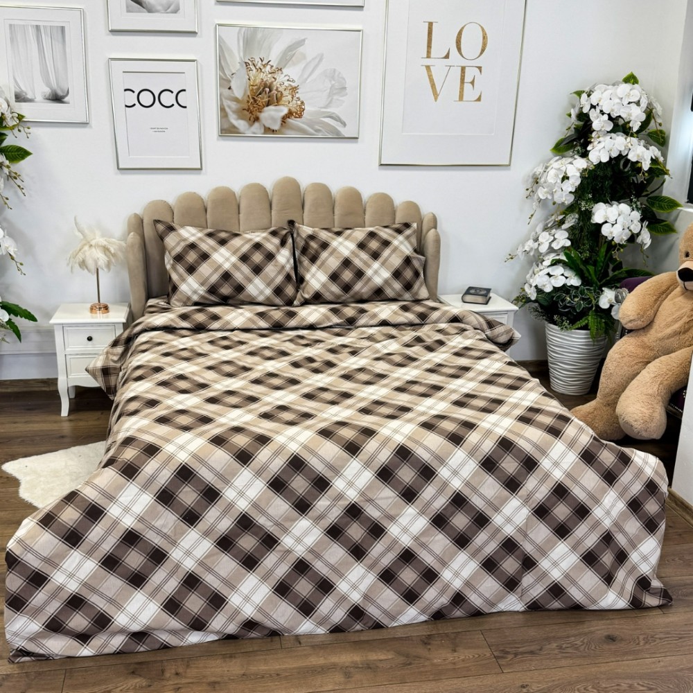 Lenjerie de Pat Dublu, Policoton Ranforsat, 4 piese, Atelier Cumparamisim, Maro, romburi, cod produs: CMP-PC19
