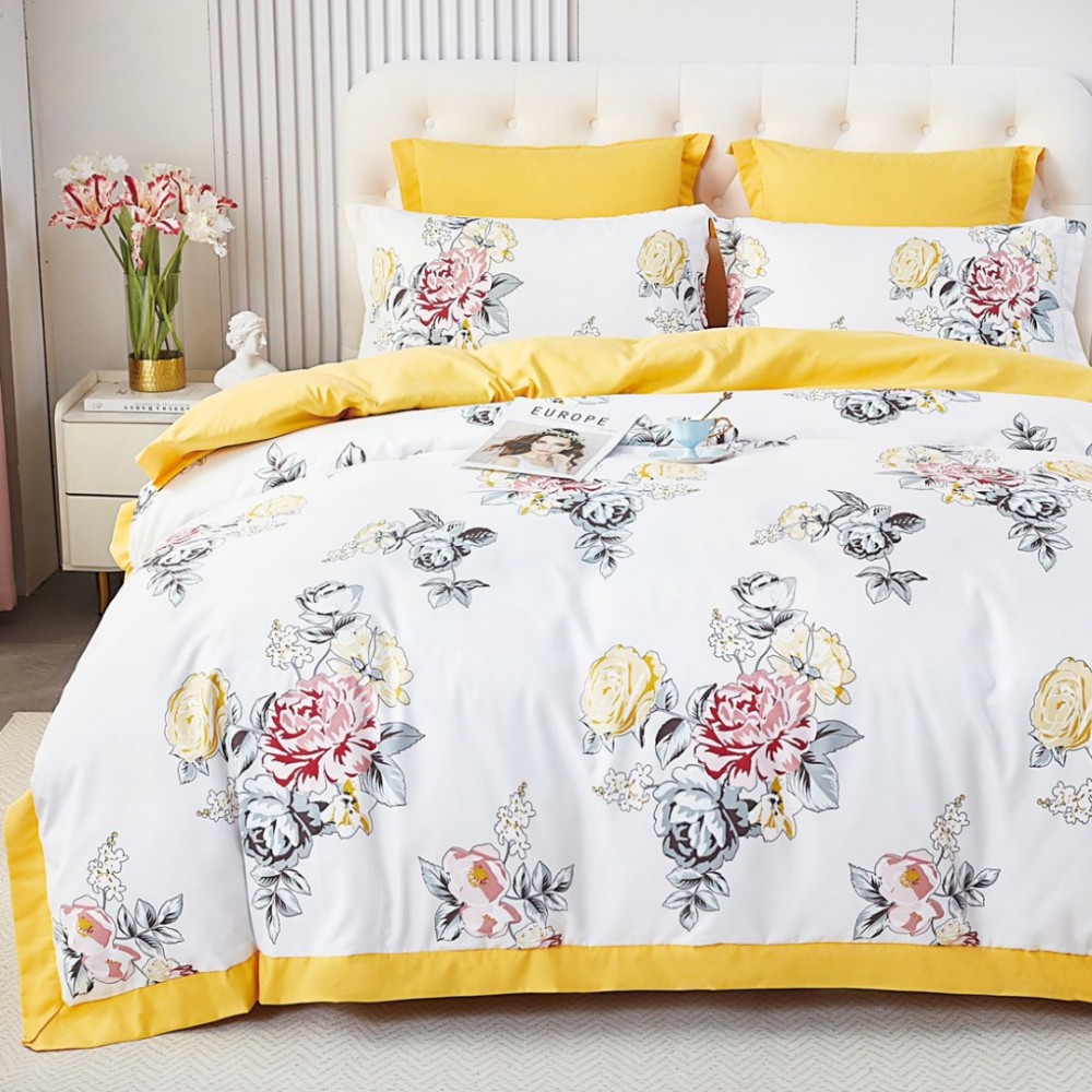 Lenjerie de Pat Dublu, Super Premium, Finet Ranforsat, 6 Piese, Ambalat în Cutie de Lux, Alb, Galben, flori, Super Design Pucioasa, cod produs: SDP-FC13