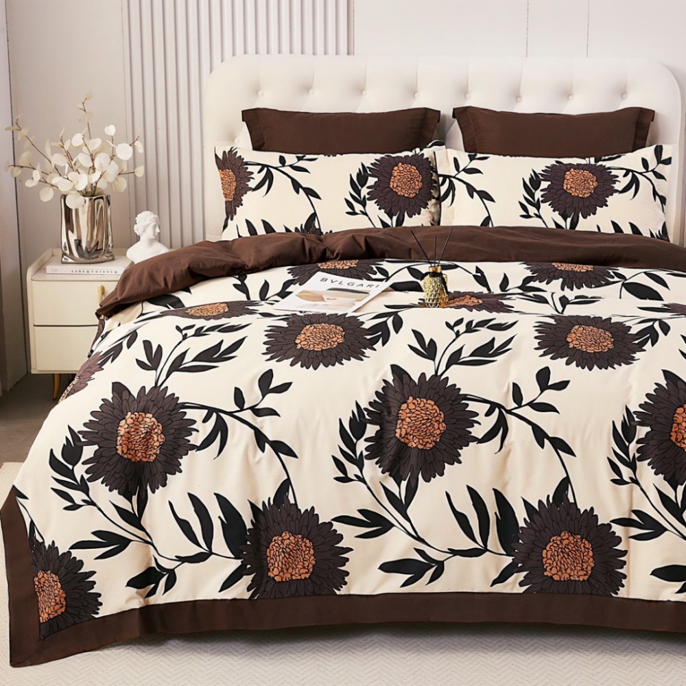Lenjerie de Pat Dublu, Super Premium, Finet Ranforsat, 6 Piese, Ambalat în Cutie de Lux, Crem, Maro, flori, Super Design Pucioasa, cod produs: SDP-FC11
