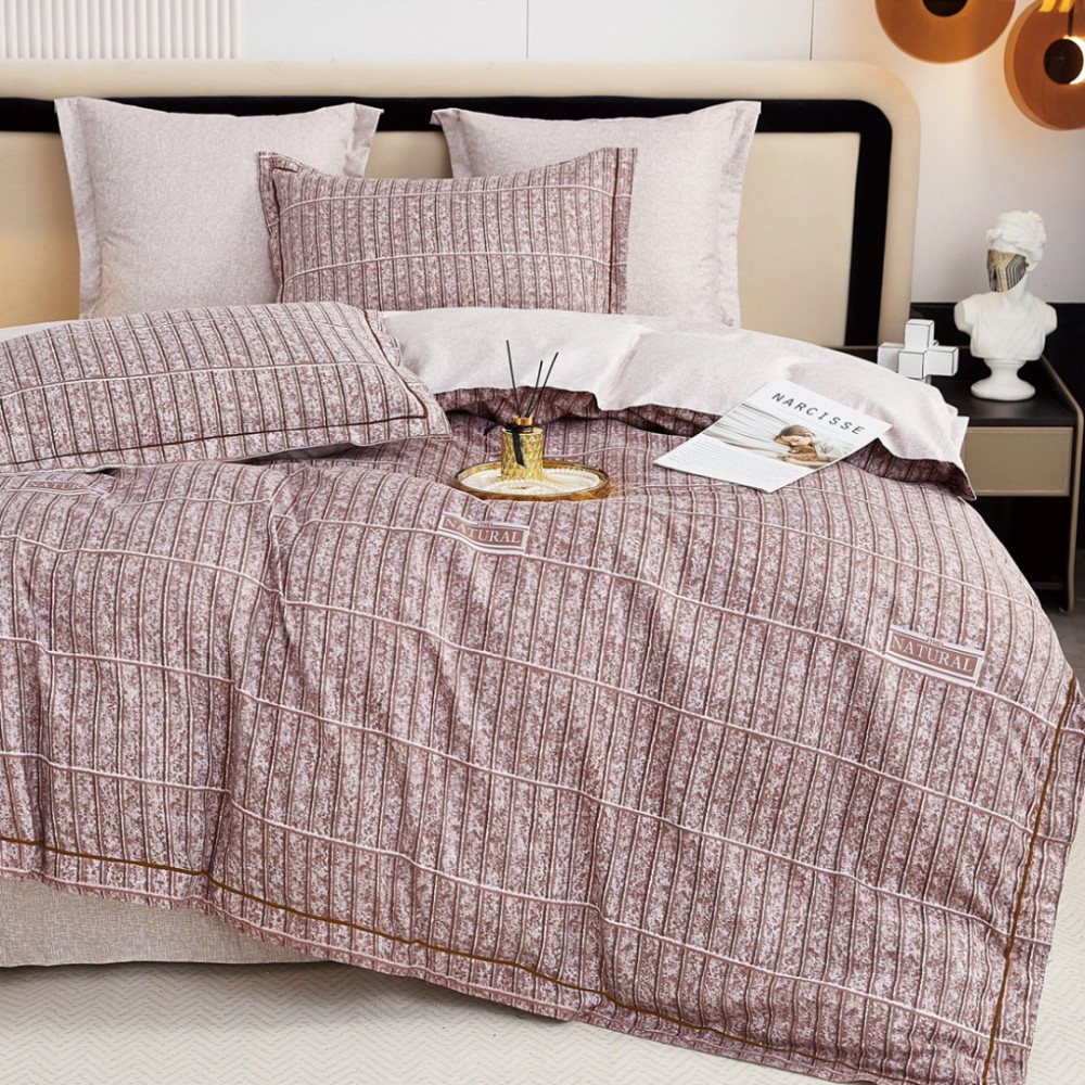 - Fețele de Pernă Uni și Modelate: Două fețe de pernă sunt într-un imprimeu uni, iar celelalte două cu model, aliniindu-se armonios cu designul cearceafului pentru pilotă.
