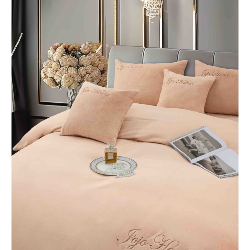 Lenjerie de pat, Soft Touch, Jojo Home, cu Blăniță Short Hair, Rabbit, 200x230 cm, 6 piese, Cappuccino, cod produs: JOJ-RSH-10