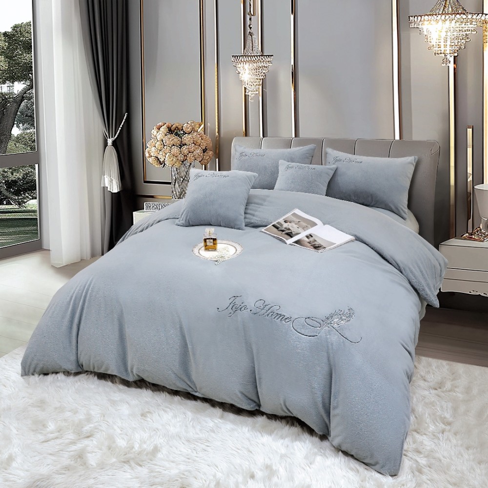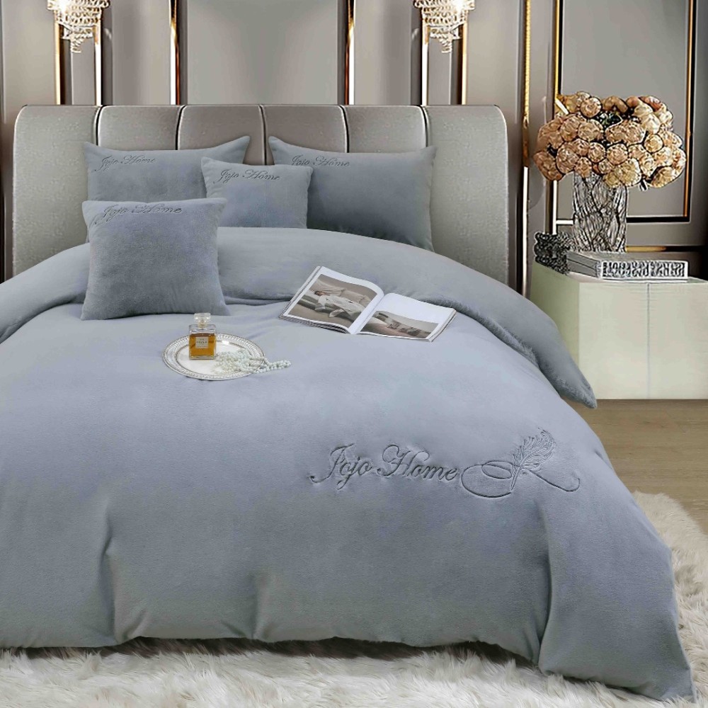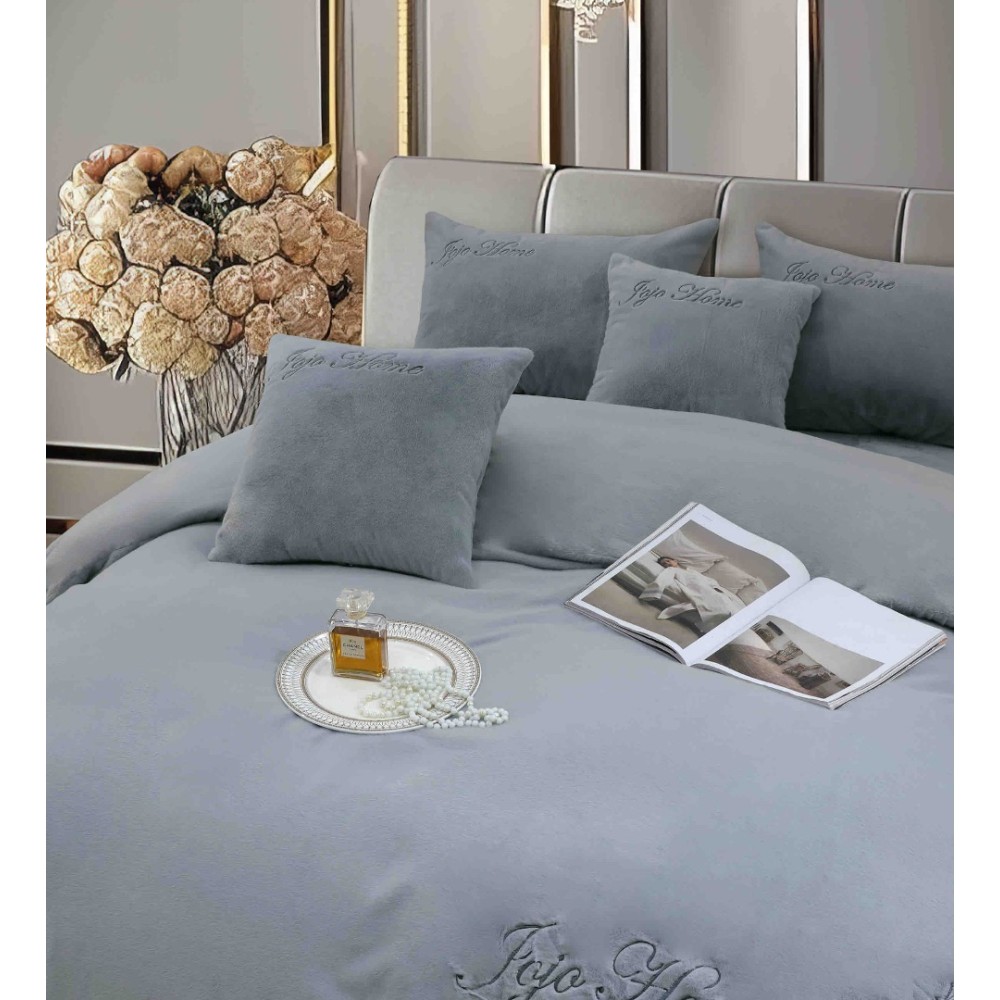 Lenjerie de pat, Soft Touch, Jojo Home, cu Blăniță Short Hair, Rabbit, 200x230 cm, 6 piese, Gri deschis, cod produs: JOJ-RSH-06