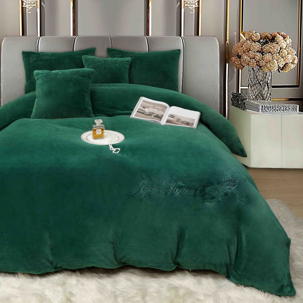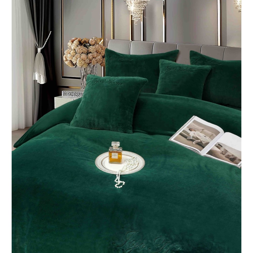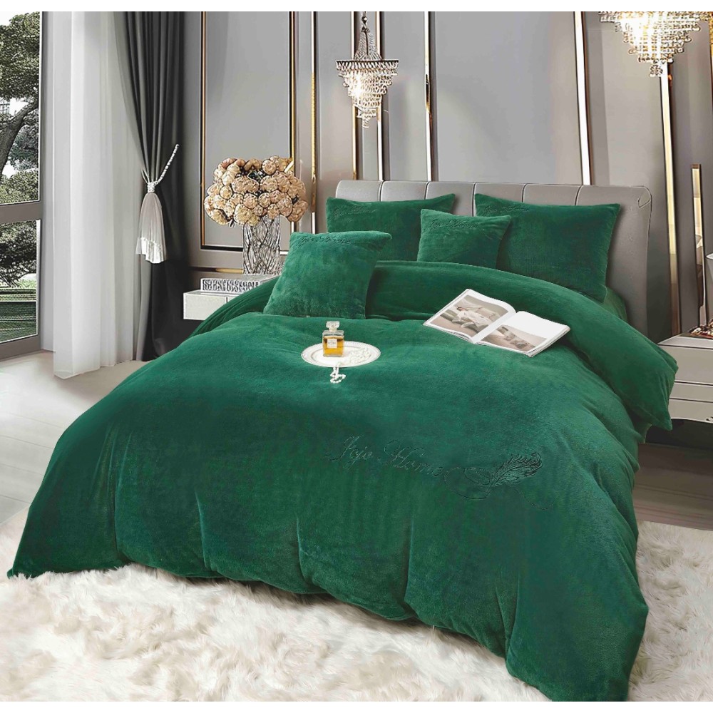 Lenjerie de pat, Soft Touch, Jojo Home, cu Blăniță Short Hair, Rabbit, 200x230 cm, 6 piese, Verde Smarald, cod produs: JOJ-RSH-04