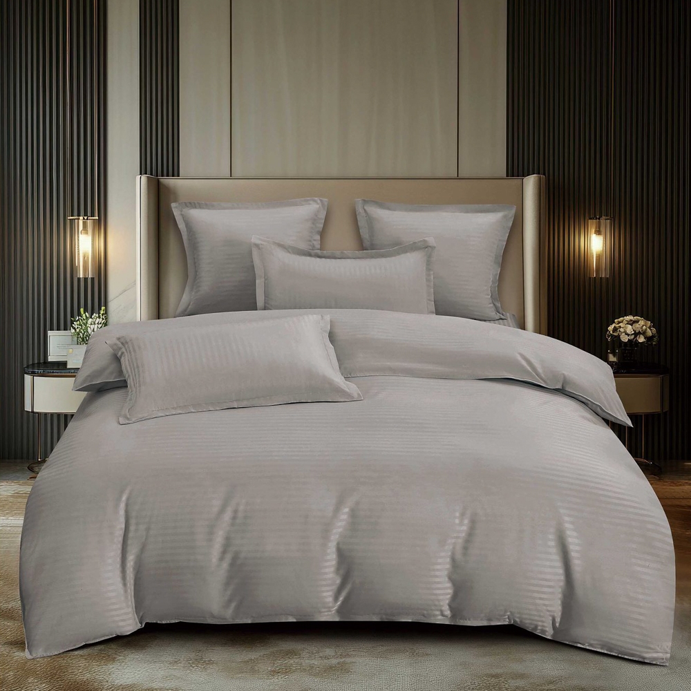 Lenjerie HoReCa, pat dublu, Damasc Finetat Deluxe, 6 piese, Pucioasa, Gri deschis, Johny Home Pucioasa, cod produs: SPR-DR-11