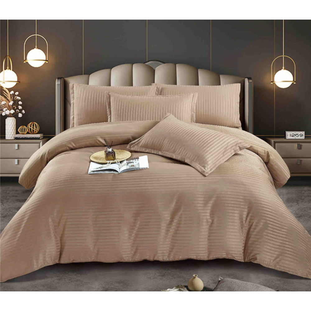 Lenjerie HoReCa, pat dublu, Damasc Finetat Deluxe cu Elastic, 6 piese, Jojo Home, Cappuccino, cod produs: JOJ-DE-15