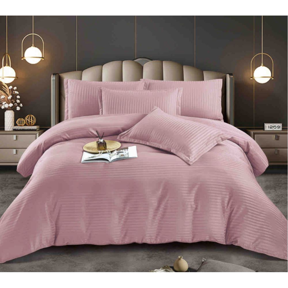 Lenjerie HoReCa, pat dublu, Damasc Finetat Deluxe cu Elastic, 6 piese, Jojo Home, Roz Prafuit, cod produs: JOJ-DE-16