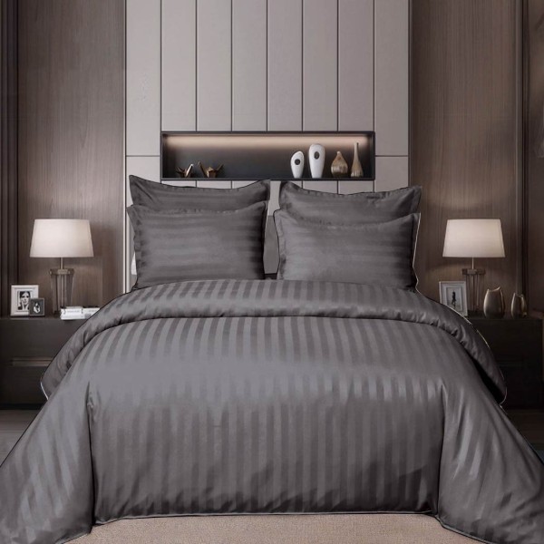 Lenjerie HoReCa, pat dublu, Damasc Finetat Deluxe cu Elastic, 6 piese, Pucioasa, Gri inchis, Johny Home Pucioasa, cod produs: SPR-DTA-14