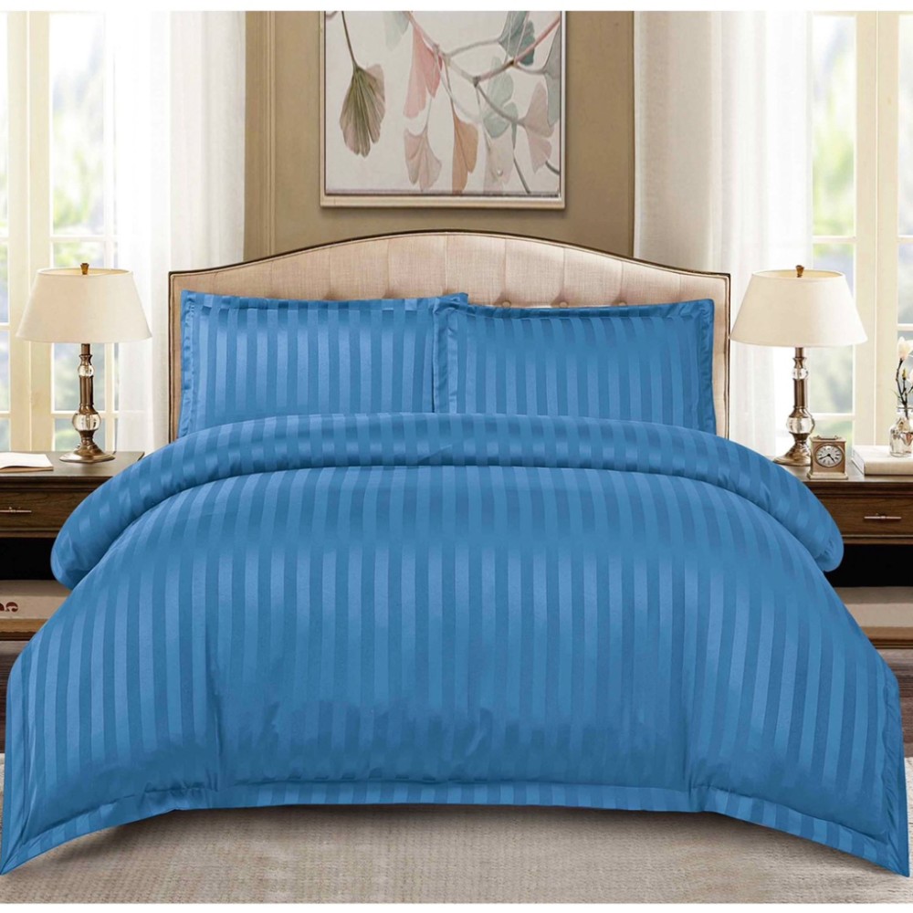 Lenjerie HoReCa, pat dublu, tip Damasc Finetat Deluxe cu Elastic, 4 piese, Albastru, Primavara Casa, cod produs: PRM-AT-125