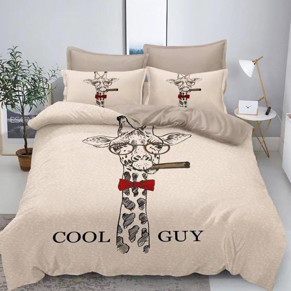 Lenjerie pat 1 PERSOANA (90x200cm, 100x200cm, 120x200cm), BUMBAC FINET, 4 piese, Identică cu Poza, Imprimeu Digital, Bej, Girafa, Casa Minunata, cod produs: YN-SNG-12