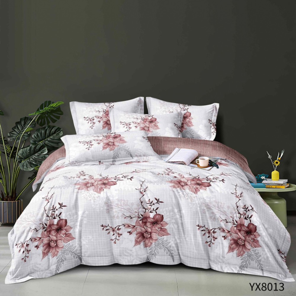 Lenjerie pat 140x200cm, FINET, cu elastic, 4 piese, Gri, Roz, Flori, Primavara Casa, cod produs: PRM-FS-YX8013