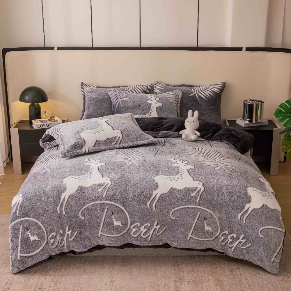 Lenjerie Pat 1 Persoana, Jojo Home, CoCoLiNo (Fleece), 4 piese, Gri, Cerbi, cod produs: JOJ-XHR-S-04