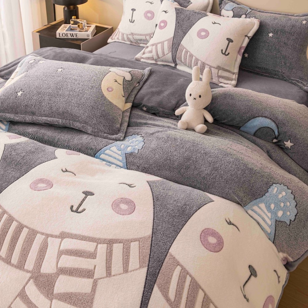 Lenjerie Pat 1 Persoana, Jojo Home, CoCoLiNo (Fleece), 4 piese, Gri, Ursuleti, cod produs: JOJ-XHR-S-11