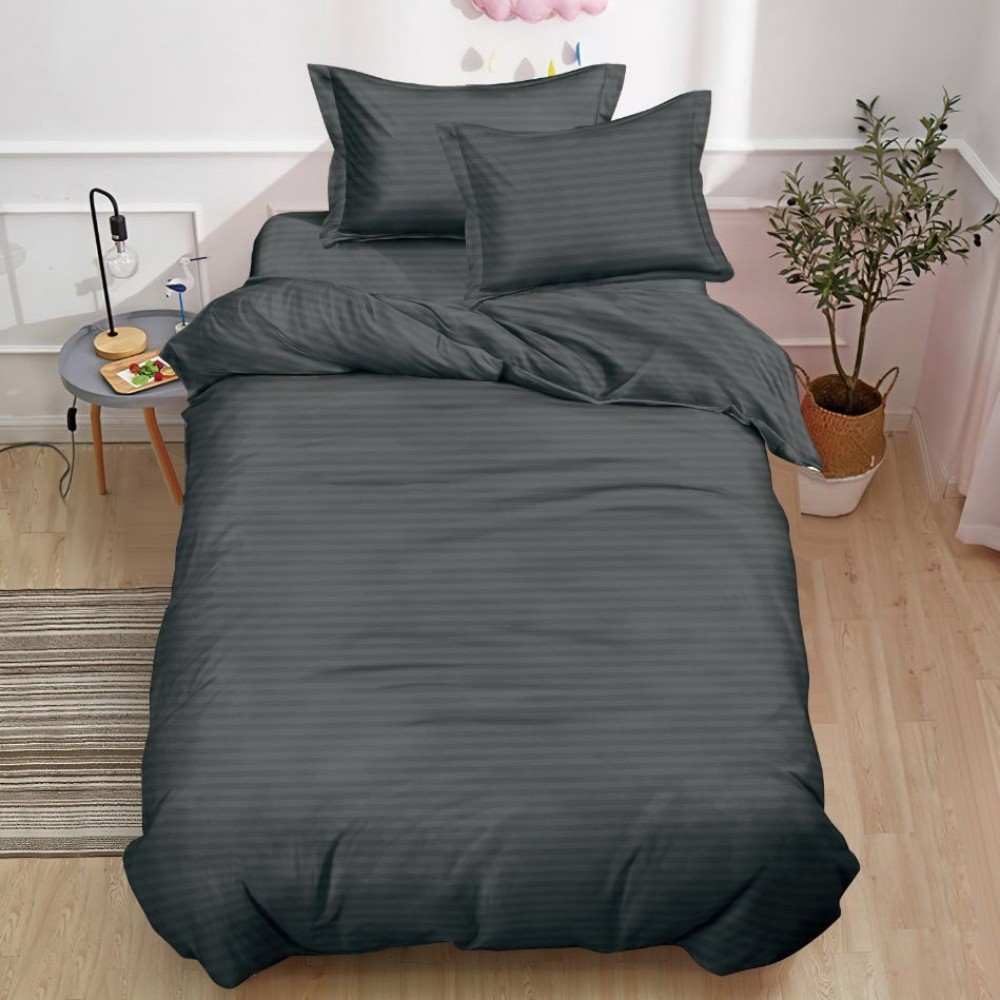 Lenjerie pat 140x200cm, Damasc Finetat, 4 piese, cu ELASTIC, Gri, Johny Home Pucioasa, cod produs: SPR-DY-08