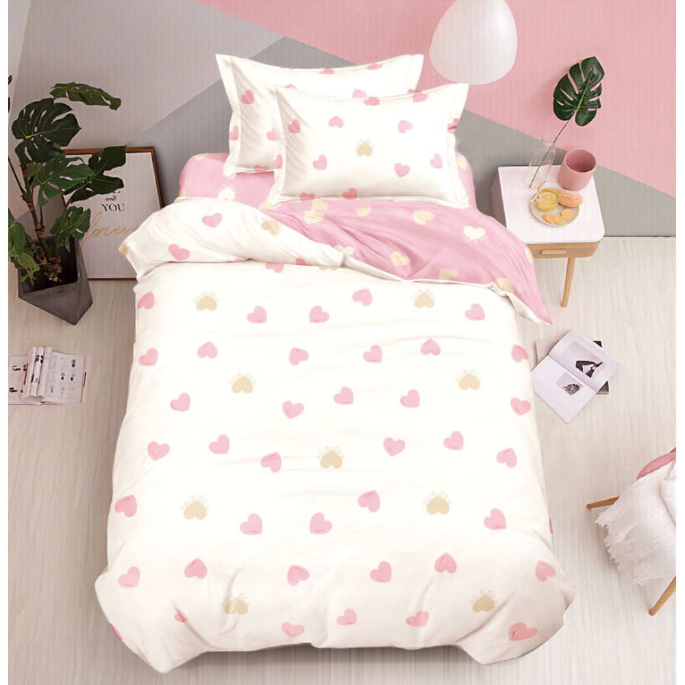 Lenjerie pat 140x200cm, FINET, 4 piese, cu ELASTIC, Crem, Roz, Inimioare, Johny Home Pucioasa, cod produs: SPR-T60-150