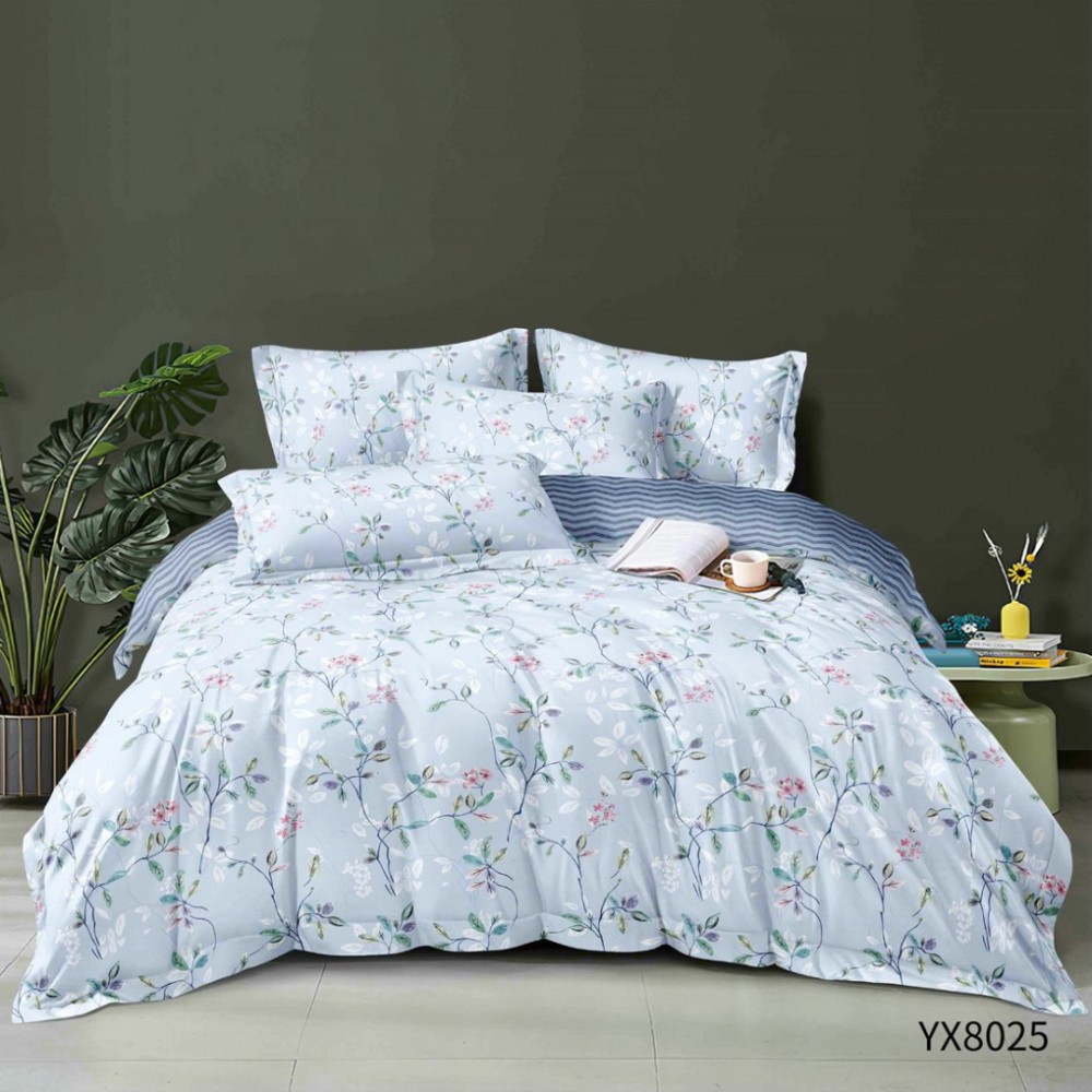 Lenjerie pat 140x200cm, FINET, cu elastic, 4 piese, Bleu, Floricele, Primavara Casa, cod produs: PRM-FS-YX8025