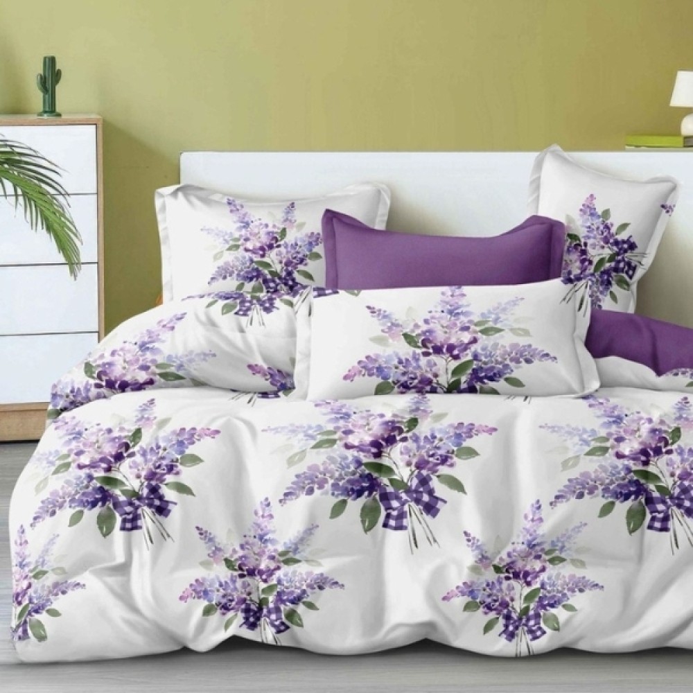 Lenjerie pat dublu (140x200cm, 160x200cm, 180x200cm), FINET, 6 piese, Alb, Mov, flori, East Romania, cod produs: EST-FN-428