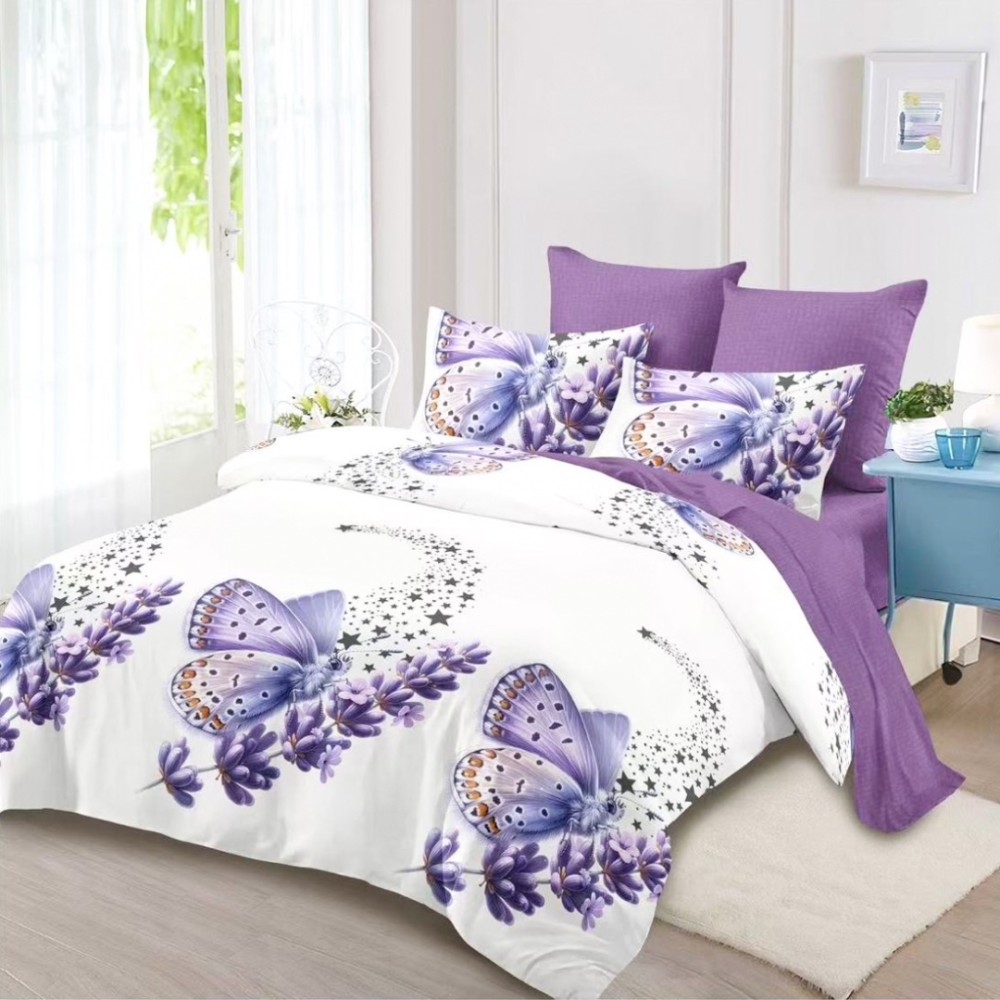 Lenjerie Pat Dublu (140x200cm, 160x200cm, 180x200cm), FINET, 6 piese, Alb, Mov, Lavanda, Fluturi, Super Design Pucioasa, cod produs: SDP-FNC-871