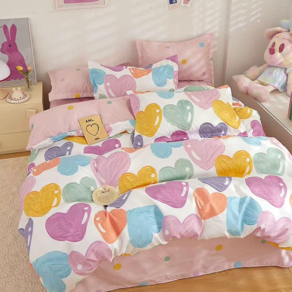 Lenjerie pat dublu (140x200cm, 160x200cm, 180x200cm), FINET, 6 piese, Alb, Roz, inimioare, Johny Home Pucioasa, cod produs: SPR-R60-604