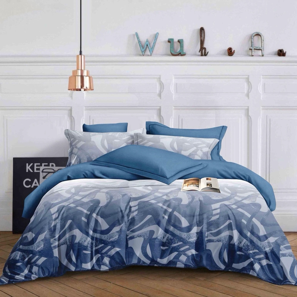 Lenjerie pat dublu (140x200cm, 160x200cm, 180x200cm), FINET, 6 piese, Albastru, abstract, East Romania, cod produs: EST-FN-395