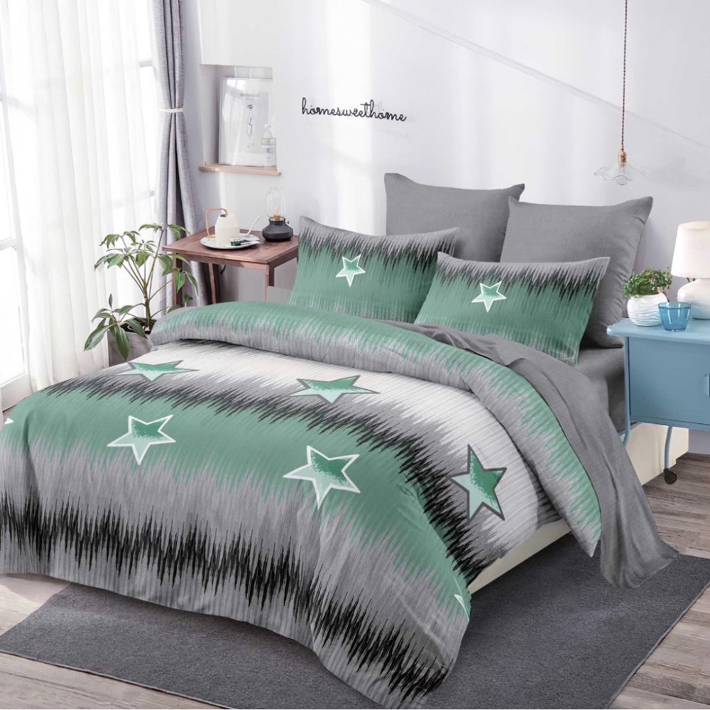 Lenjerie Pat Dublu (140x200cm, 160x200cm, 180x200cm), FINET, 6 piese, Gri, Verde, Stelute, Super Design Pucioasa, cod produs: SDP-FNC-898