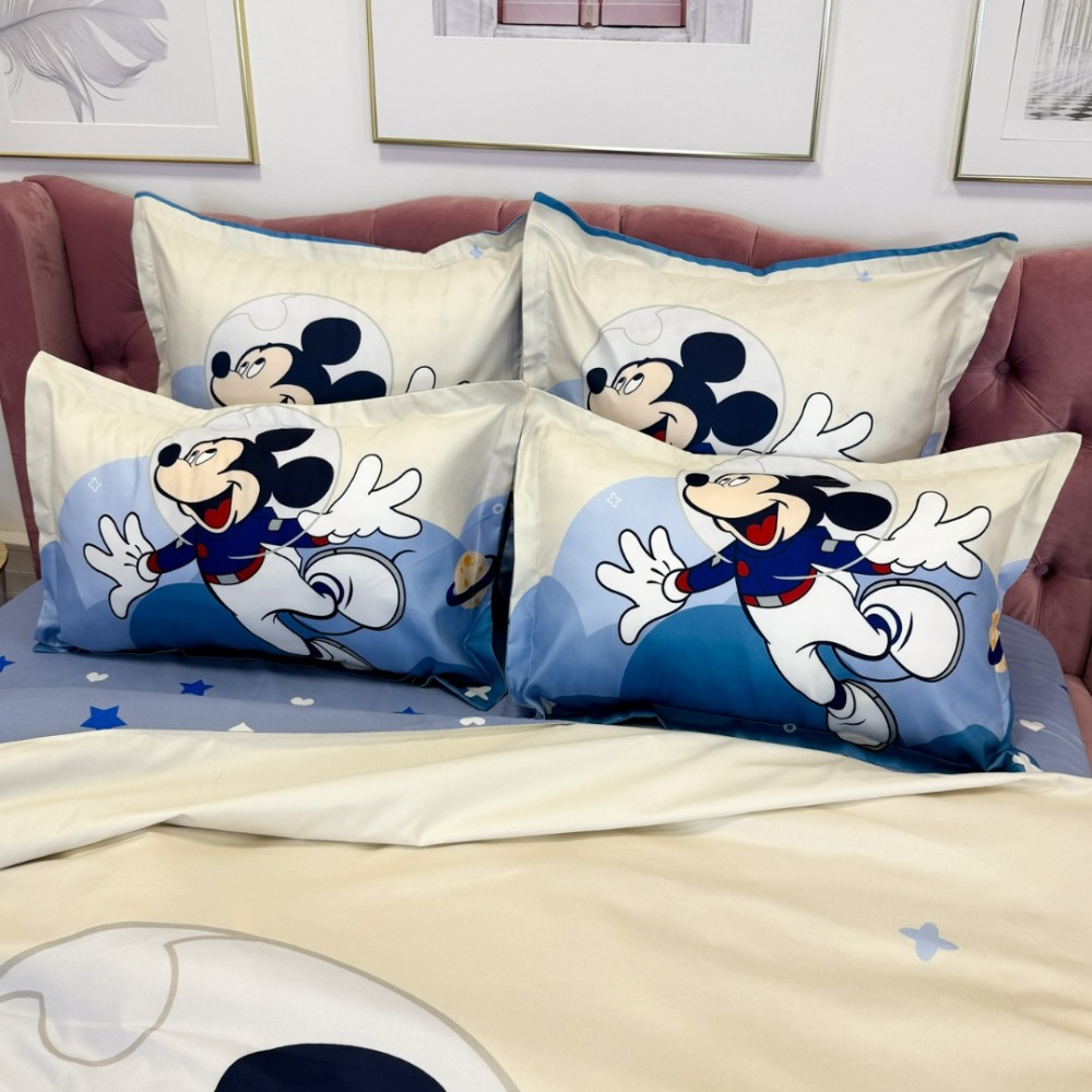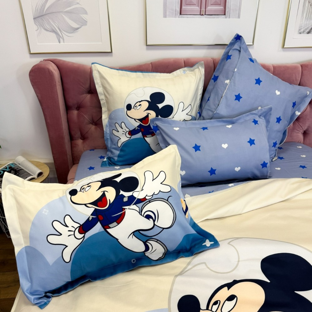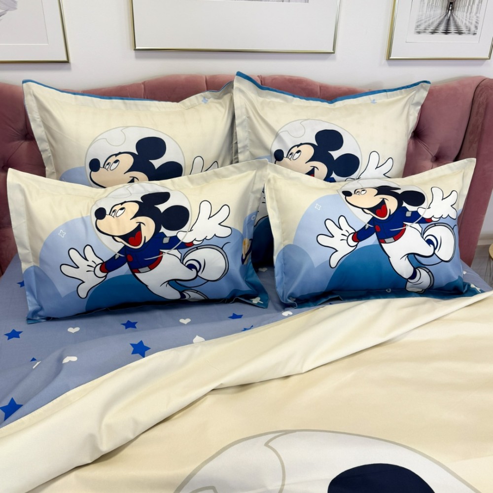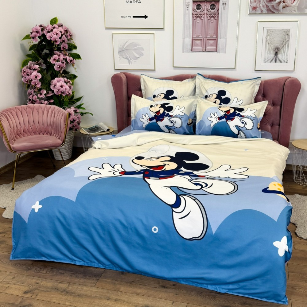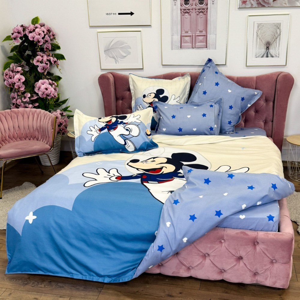 Lenjerie pat dublu (140x200cm, 160x200cm, 180x200cm), FINET, 6 piese, IDENTICA CU POZA,, Alb, Bleu, Mickey Mouse, Casa Minunata, cod produs: YN-DSN-01