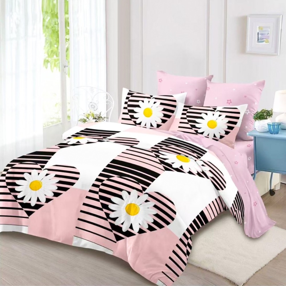 Lenjerie Pat Dublu (140x200cm, 160x200cm, 180x200cm), FINET, 6 piese, Roz, Alb, Negru, Inimioare, Margarete, Dungi, Super Design Pucioasa, cod produs: SDP-FNC-872