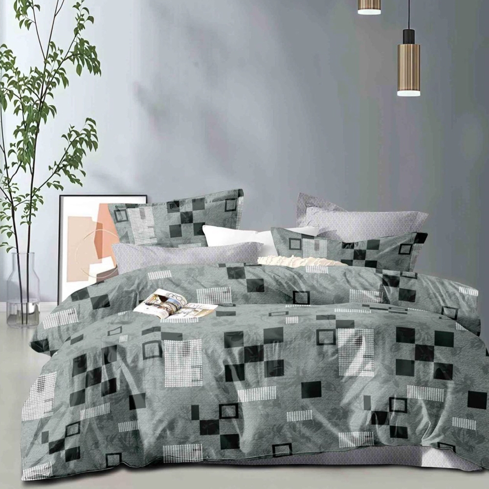 Lenjerie pat dublu (140x200cm, 160x200cm, 180x200cm), FINET, 6 piese, Verde, Gri, abstract, East Romania, cod produs: EST-FN-451