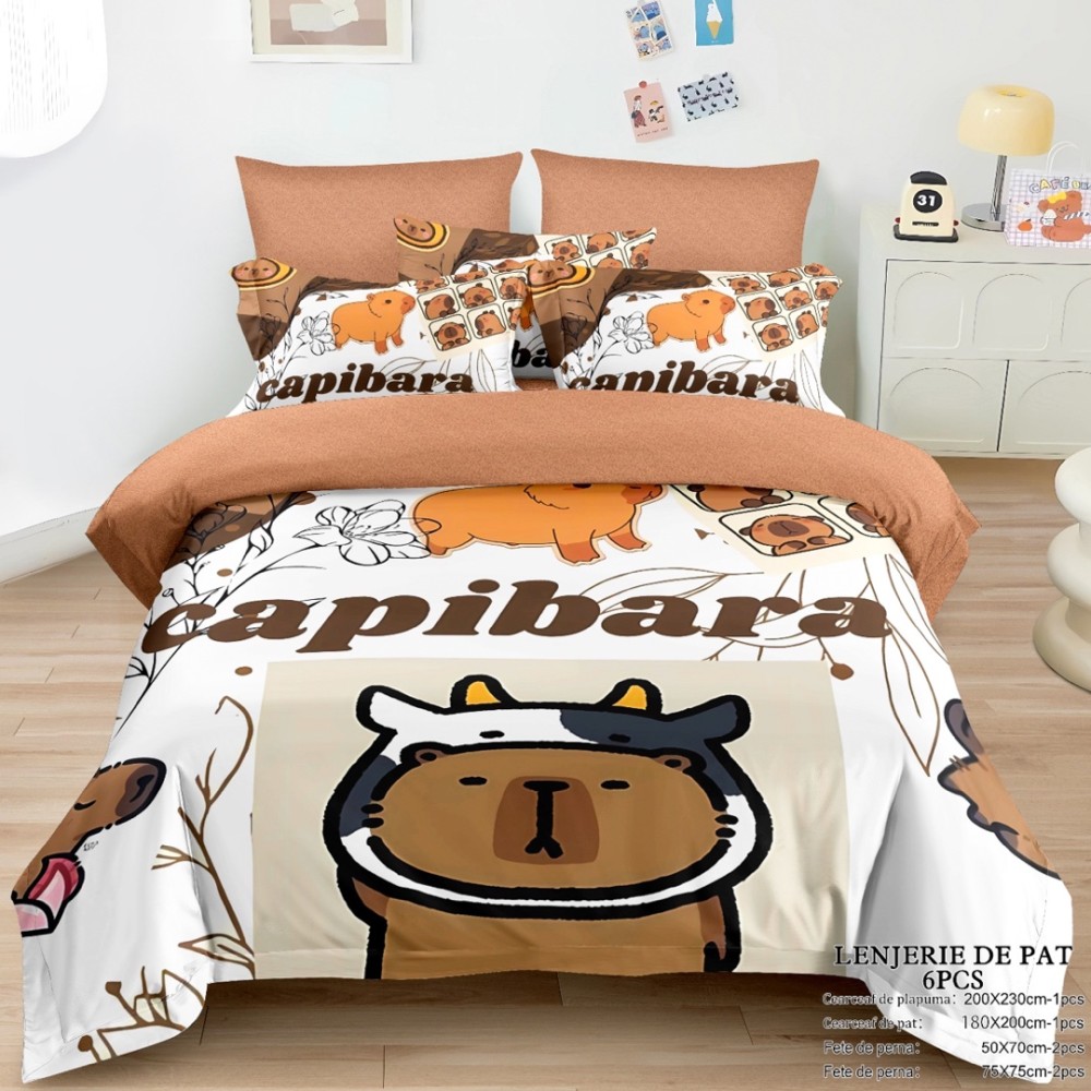 Lenjerie pat dublu FINET, 6 piese, 100% bumbac – cu imprimeu identic cu fotografia