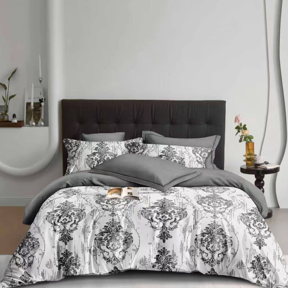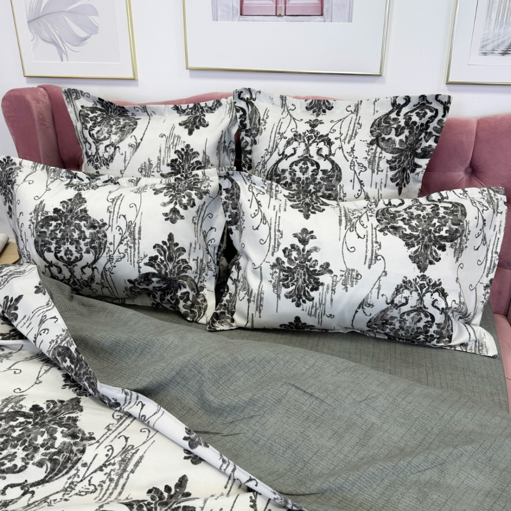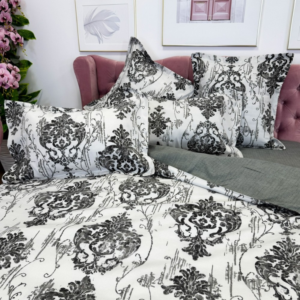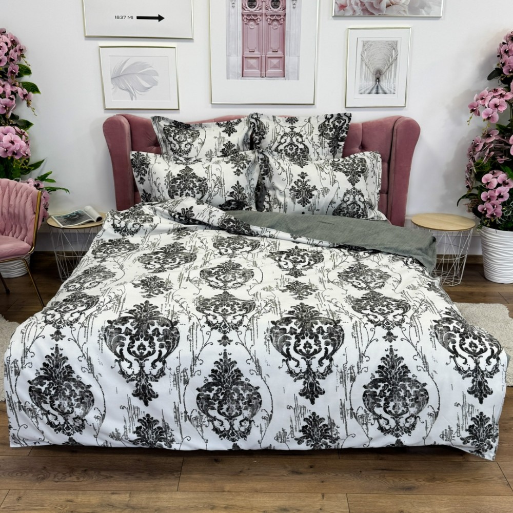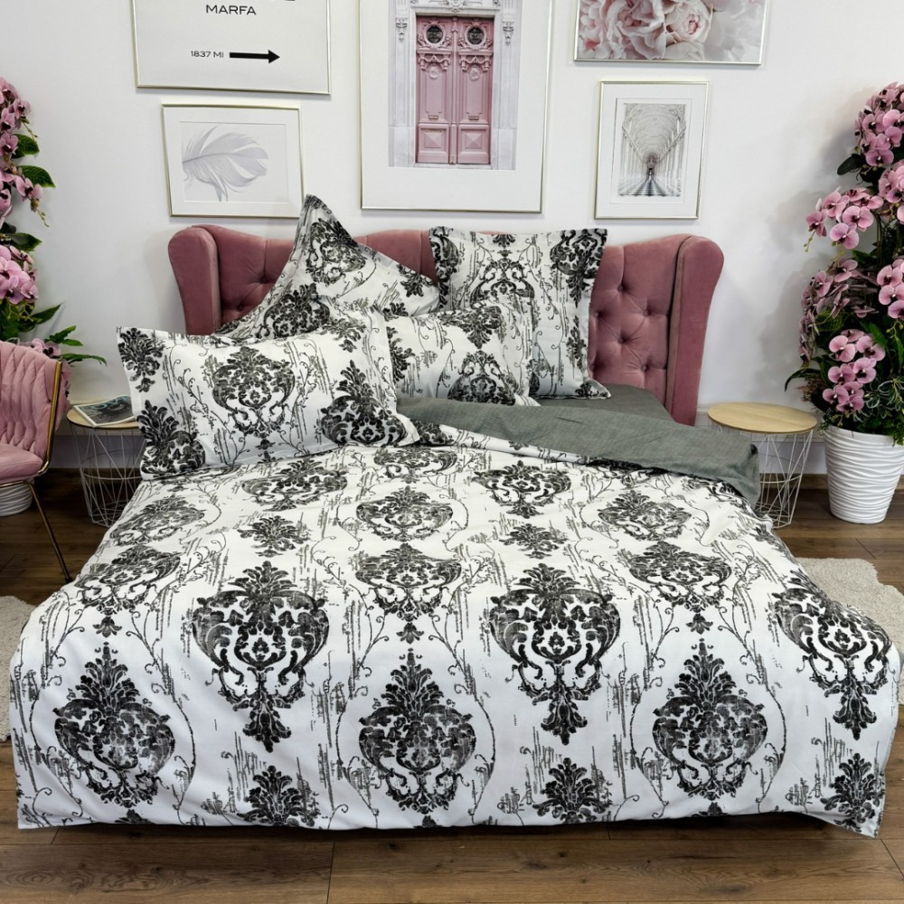 Lenjerie pat dublu (140x200cm, 160x200cm, 180x200cm), FINET, 6 piese, Alb, Gri, elegant, East Romania, cod produs: EST-FN-366
