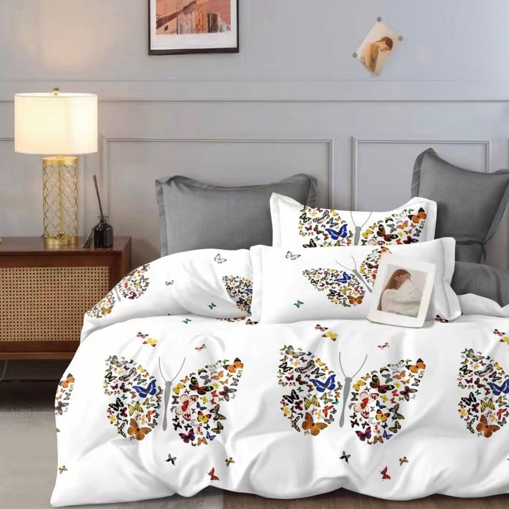 Lenjerie pat dublu (140x200cm, 160x200cm, 180x200cm), FINET, 6 piese, Alb, Gri, fluturi, East Romania, cod produs: EST-FN-381
