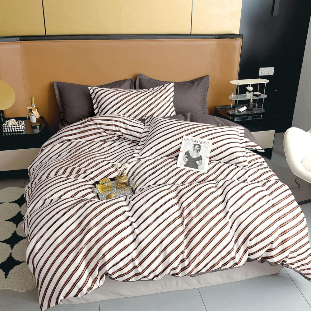 Lenjerie pat dublu (140x200cm, 160x200cm, 180x200cm), FINET, 6 piese, Alb, Maro, dungi, East Romania, cod produs: EST-FN-360