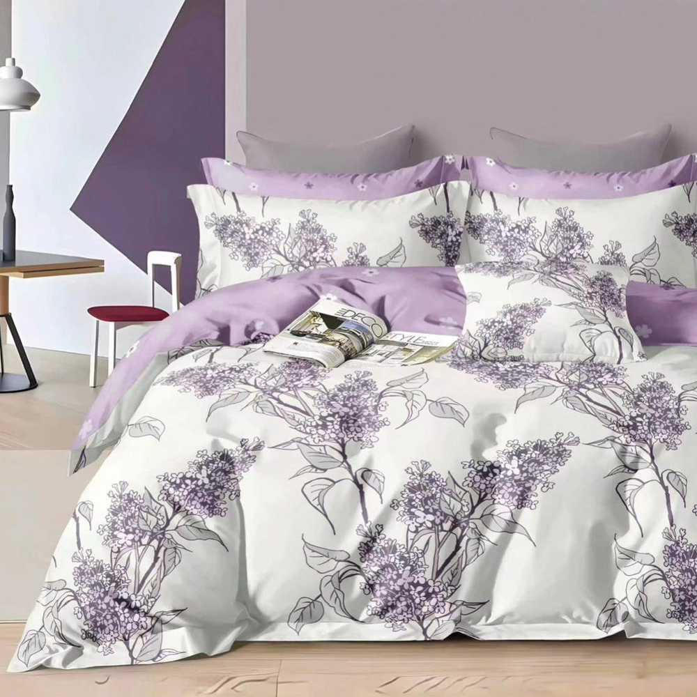 Lenjerie pat dublu (140x200cm, 160x200cm, 180x200cm), FINET, 6 piese, Alb, Mov, flori, East Romania, cod produs: EST-FN-311