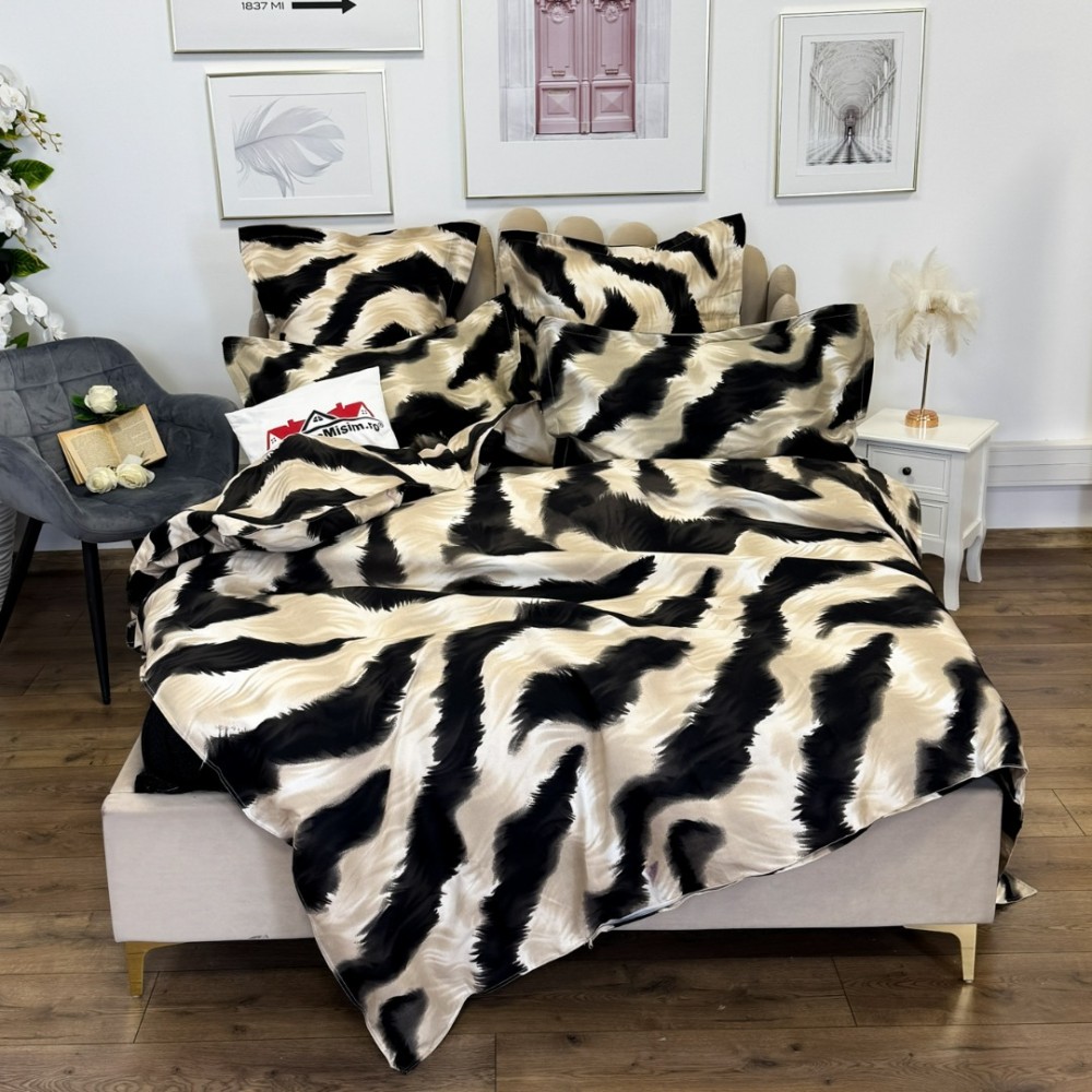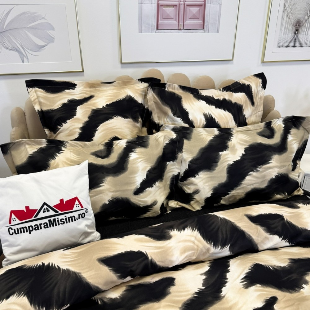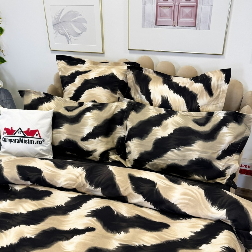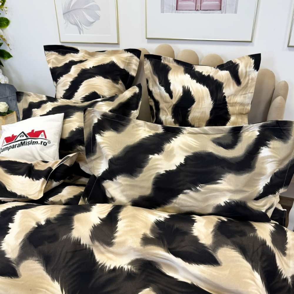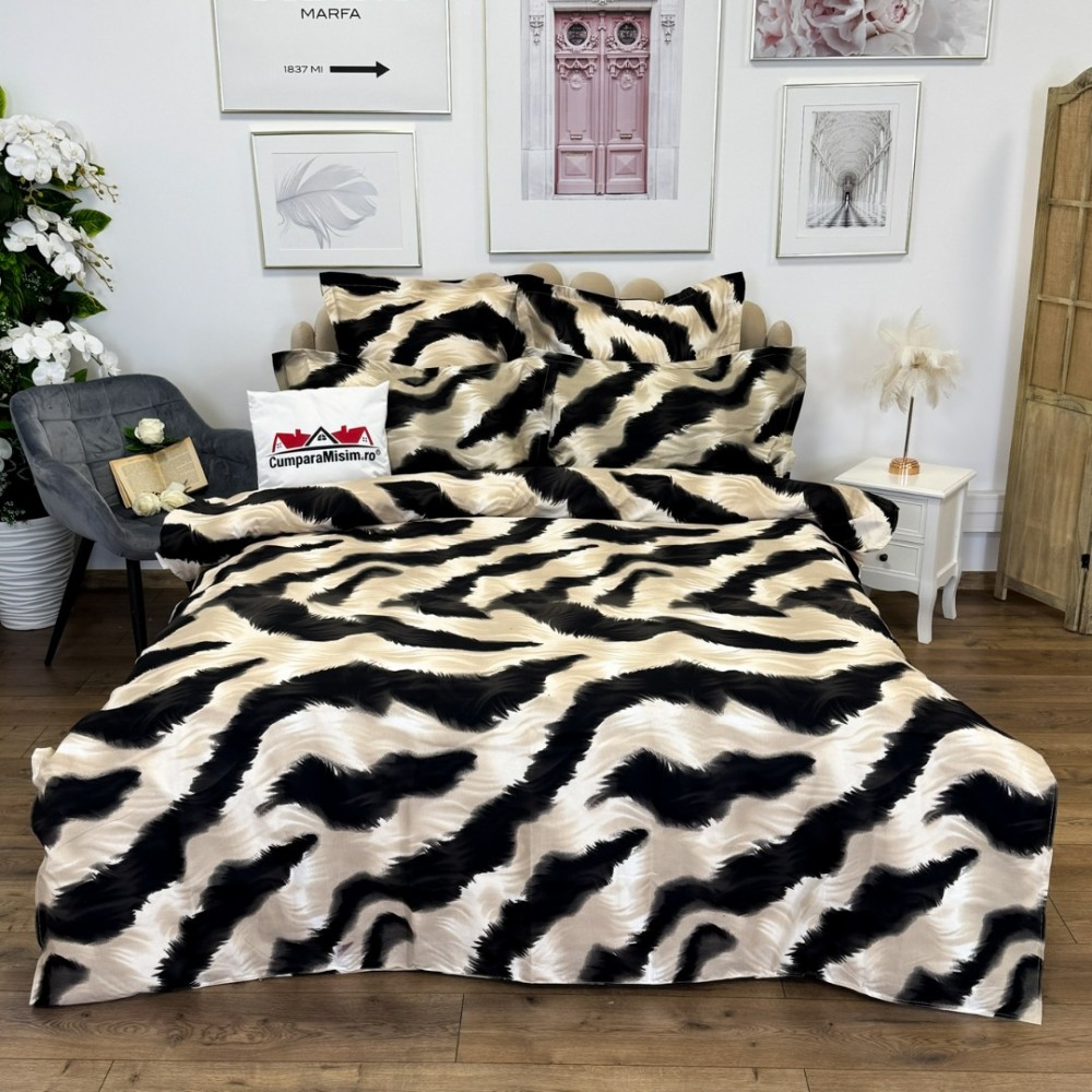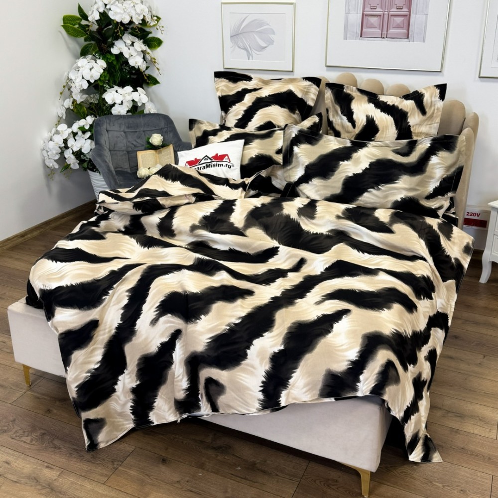 Lenjerie pat dublu (140x200cm, 160x200cm, 180x200cm), FINET, 6 piese, Alb, Negru, animal print luxury, East Romania, cod produs: EST-FN-398