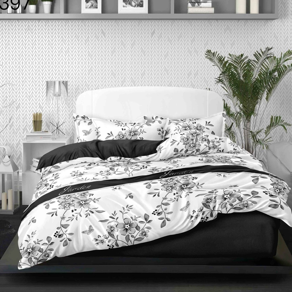Lenjerie pat dublu (140x200cm, 160x200cm, 180x200cm), FINET, 6 piese, Alb, Negru, flori, East Romania, cod produs: EST-FN-397