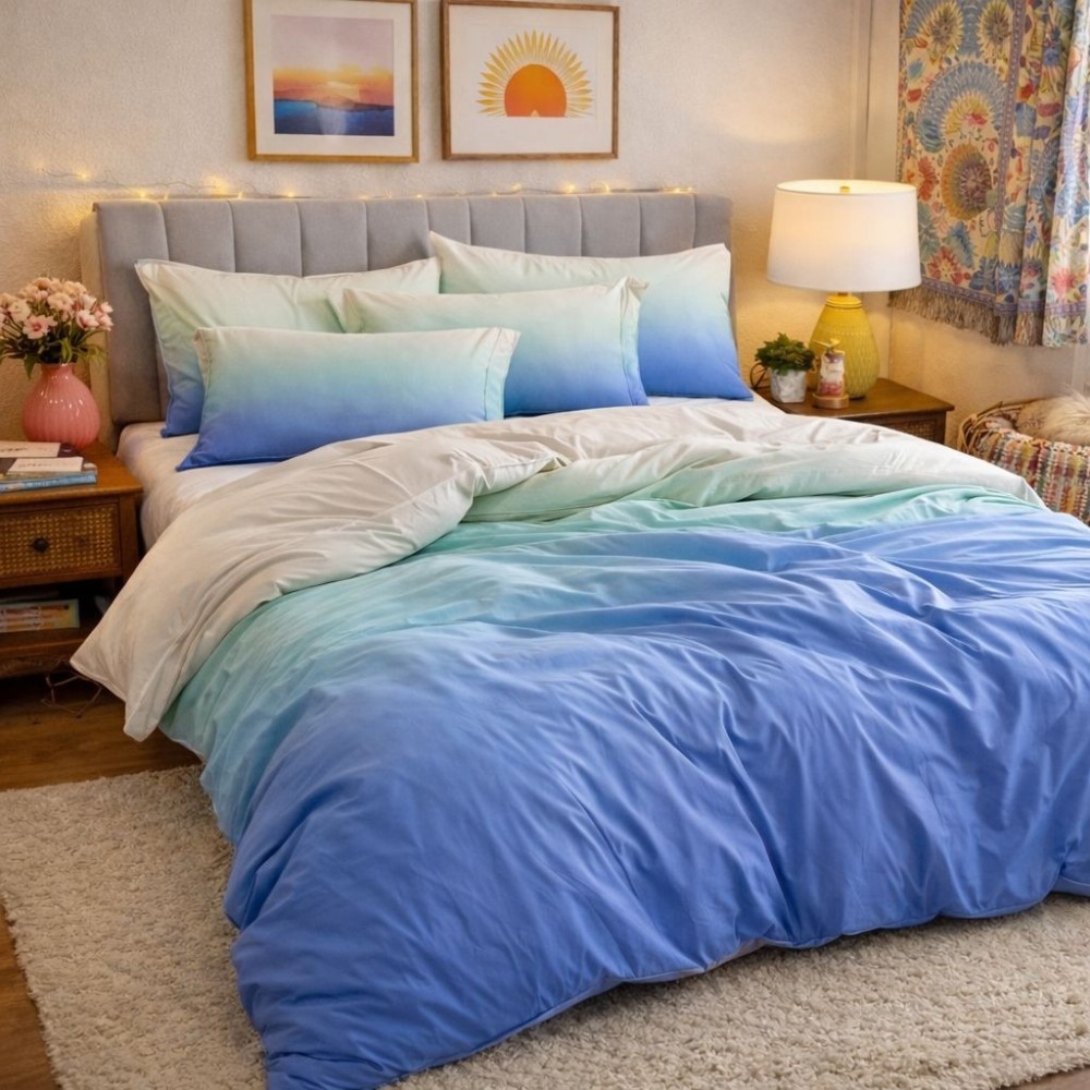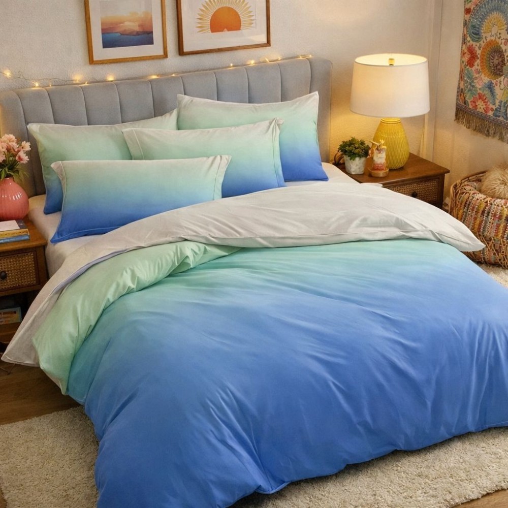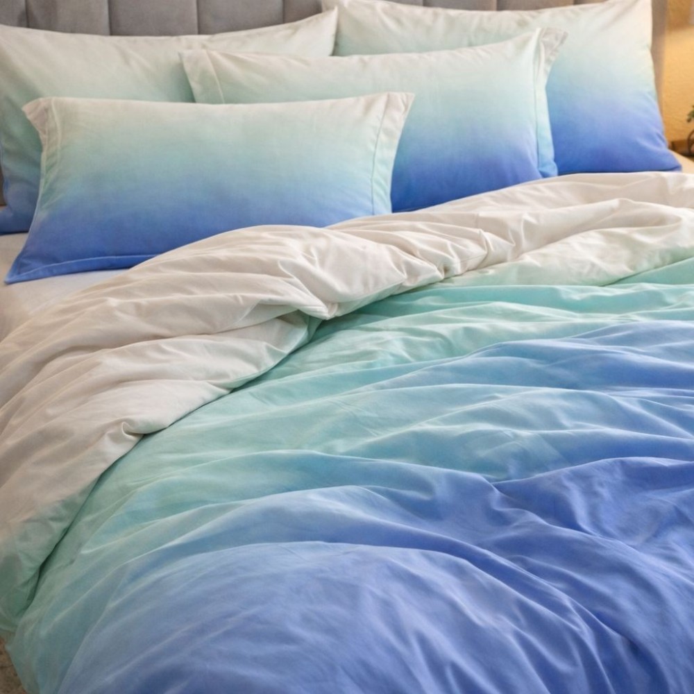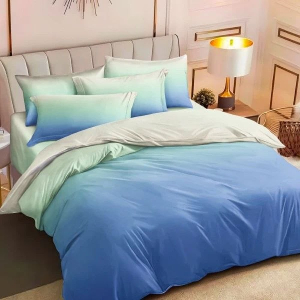 Lenjerie pat dublu, Finet, 6 piese, Albastru, degrade, Johny Home Pucioasa, cod produs: SPR-R60-574