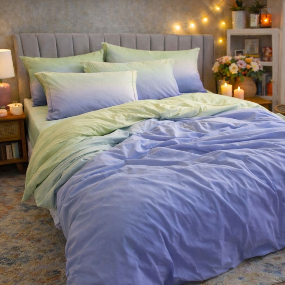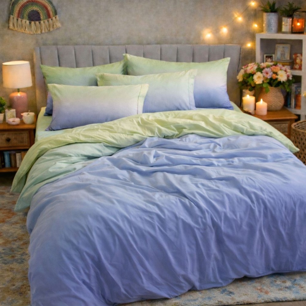 Lenjerie pat dublu, Finet, 6 piese, Bleu, degrade, Johny Home Pucioasa, cod produs: SPR-R60-575