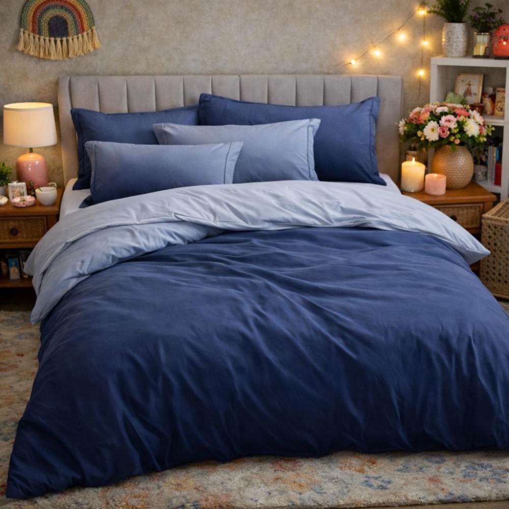 Lenjerie pat dublu, Finet, 6 piese, Bleumarin, degrade, Johny Home Pucioasa, cod produs: SPR-R60-576